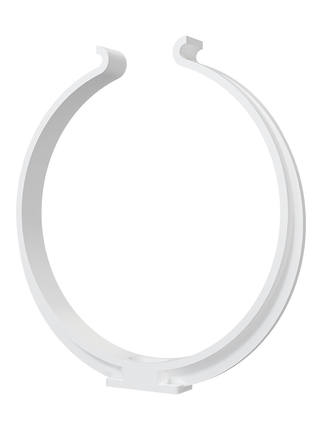 Для крепления воздуховодов соответствующего диаметра к монтажной поверхности. Крепление к месту монтажа осуществляется при помощи саморезов. Благодаря гибкости держатель можно использовать с воздуховодом примерно на 5 мм меньше и больше номинального диаметра.