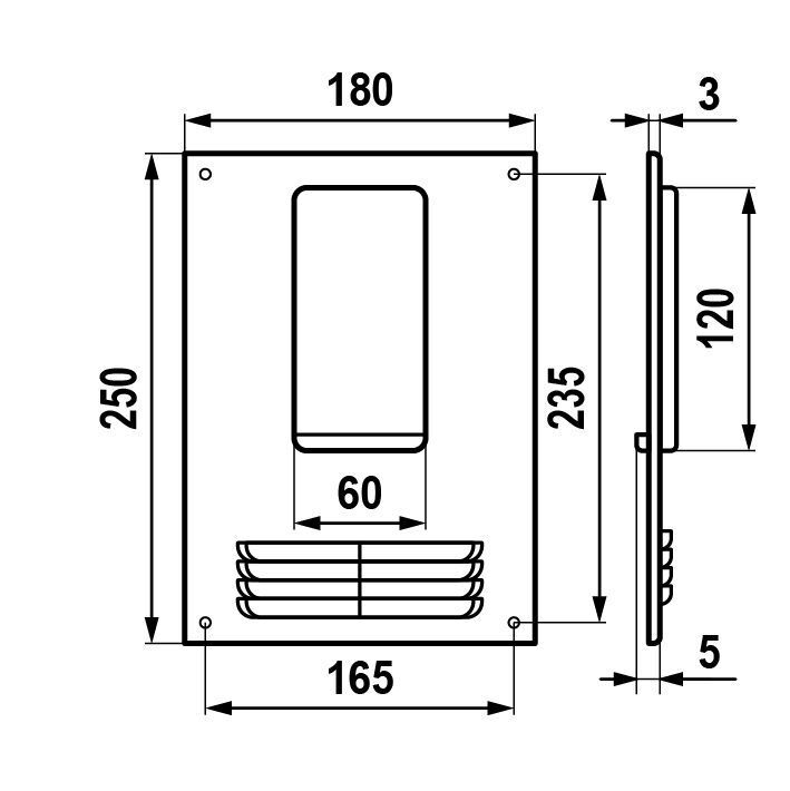 Площадка торцевая ПТВР фланец 60х120 вертикальная решетка 180х250 пластик ERA