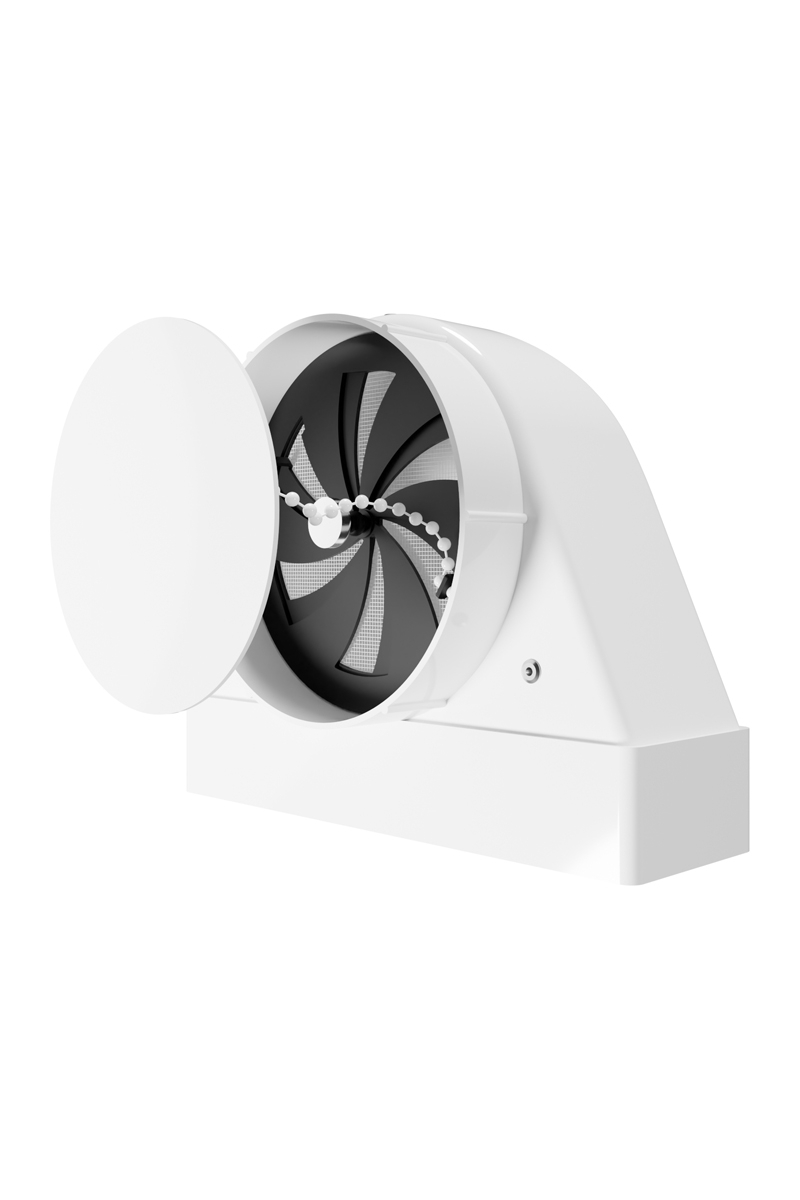 Металлическая заслонка позволяет регулировать объем воздуха, в том числе полностью перекрыть поток. Антимоскитная сетка защищает помещение от проникновения насекомых и грязи из вентиляционного канала.