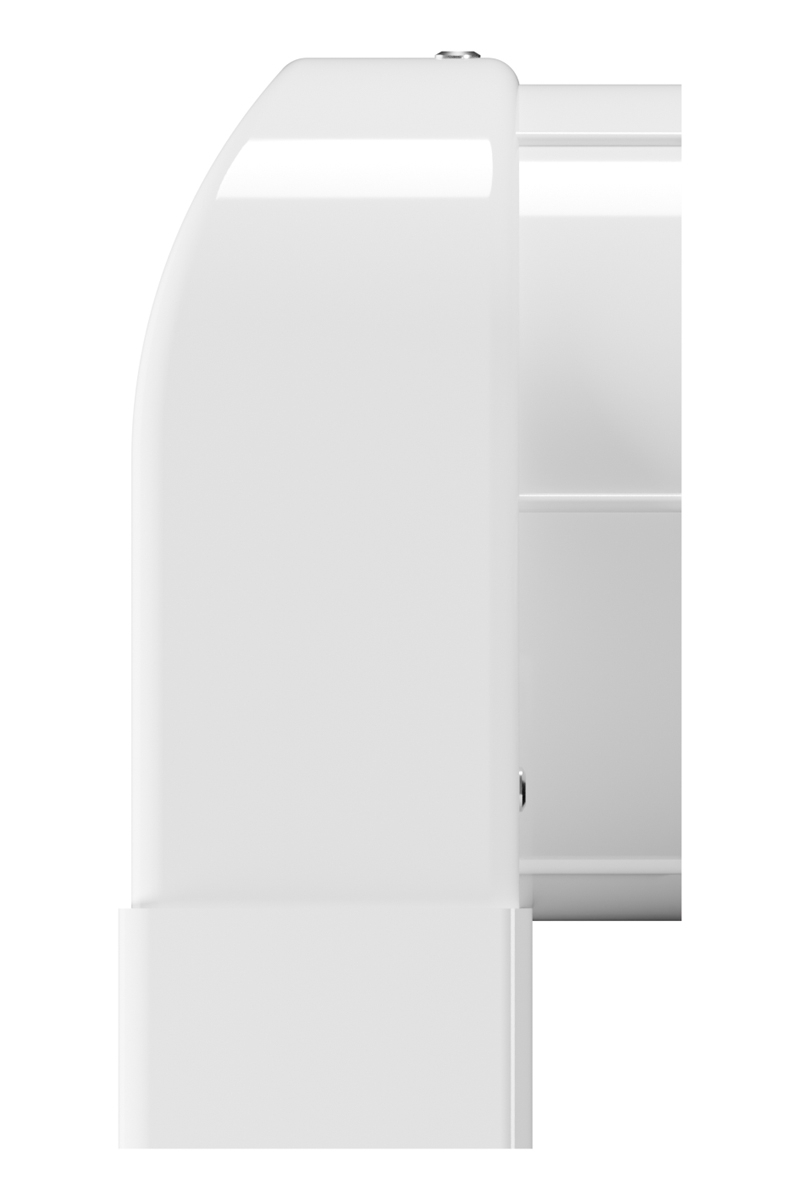 Решетка выполнена из оцинкованной стали толщиной 1,5 мм, что гарантирует прочность конструкции и долгий срок службы. Декоративная часть решетки окрашена белой порошковой краской с текстурой муарового шелка. Благодаря чему декоративная часть решетки гармонично сочетается с белым матовым полотном натяжного потолка, создавая единый стильный образ.
