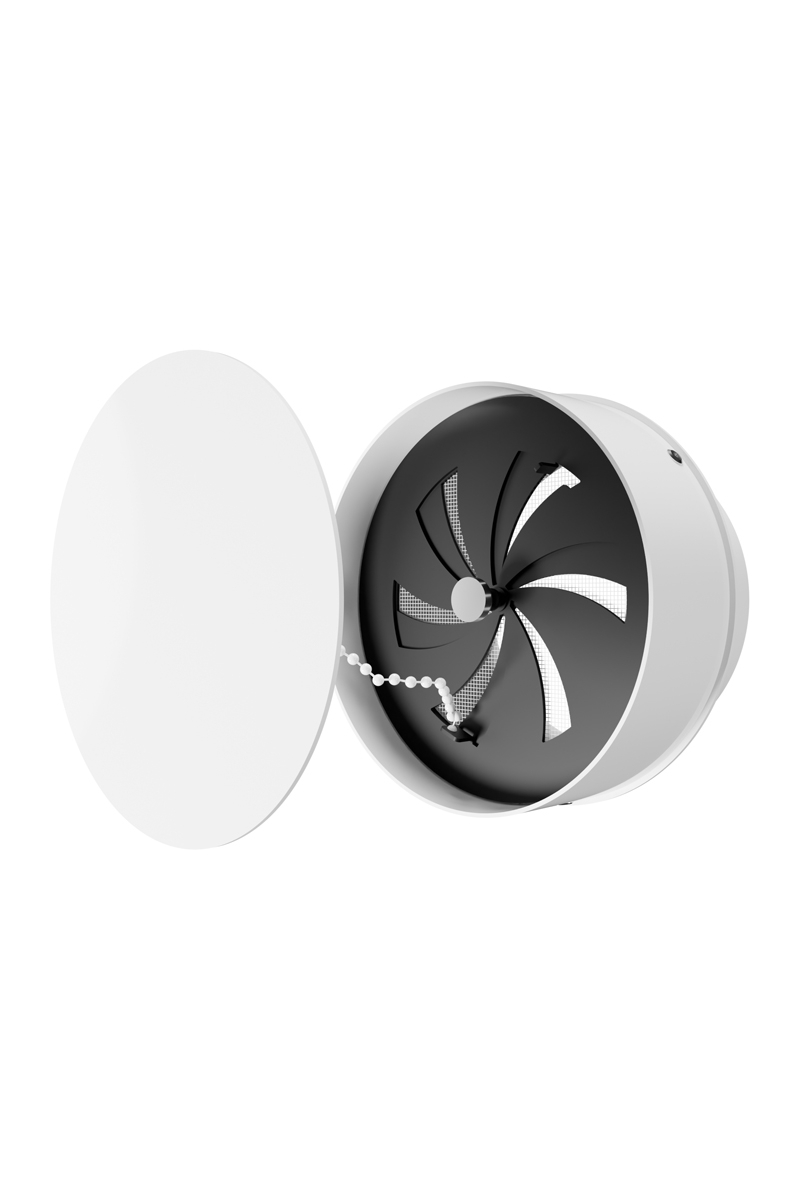 Металлическая заслонка позволяет регулировать объем воздуха, в том числе полностью перекрыть поток. Антимоскитная сетка защищает помещение от проникновения насекомых и грязи из вентиляционного канала.
