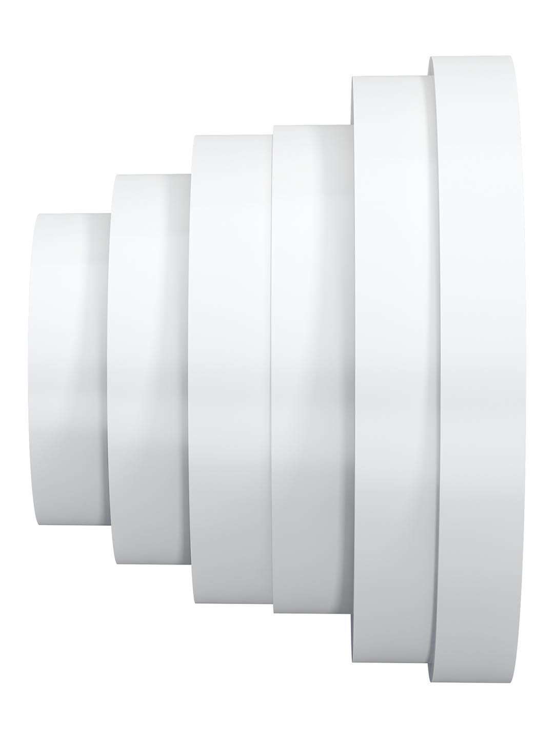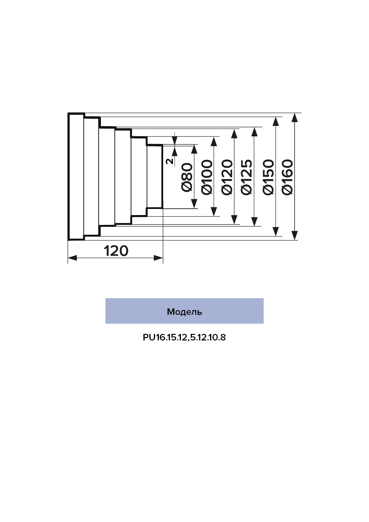 Переходник универсальный PU применяется для соединения каналов разных диаметров. Корпус подрезается для получения редуктора с необходимыми диаметрами. Соединение осуществляется напрямую с воздуховодами.