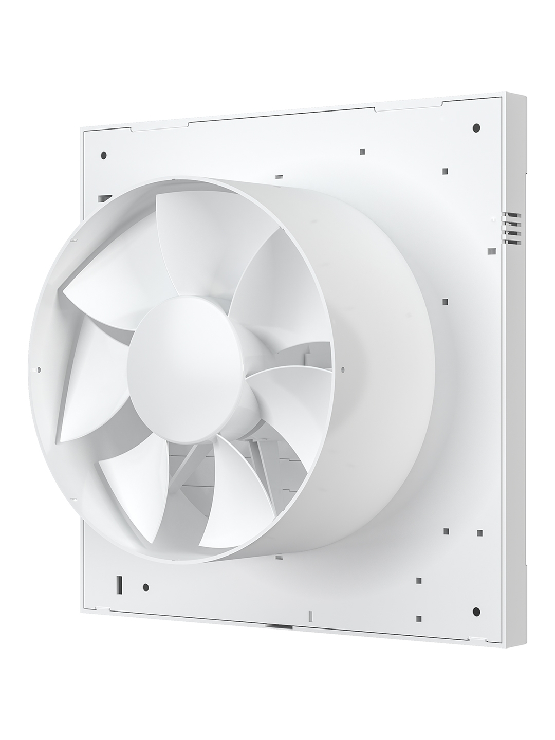 Вытяжные накладные вентиляторы. Для монтажа в вентиляционные шахты или соединения с воздуховодами. Вентиляторы оснащены жалюзи, которые автоматически открываются на время работы устройства. В закрытом положении жалюзи перекрывают движение воздуха, устраняя сквозняки. Уровень защиты – IP24. Термоактюатор обеспечивает плавное открытие и закрытие створок жалюзи в течение 45 секунд после включения / выключения вентилятора.