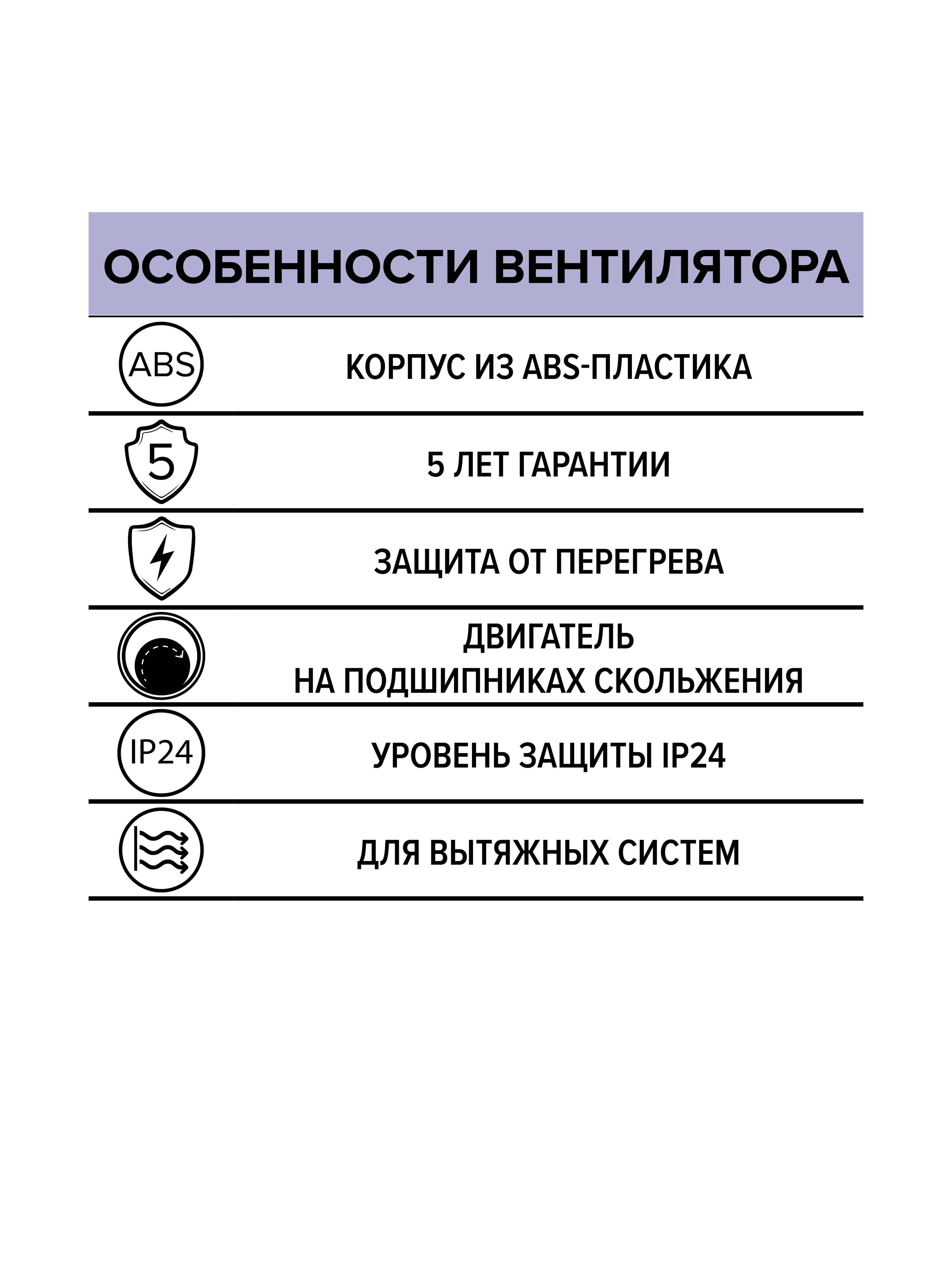 Долговечный двигатель с предохранителем гарантирует до 30 000 часов непрерывной работы, предохранитель отключит вентилятор при нагреве обмотки свыше +130 °C.