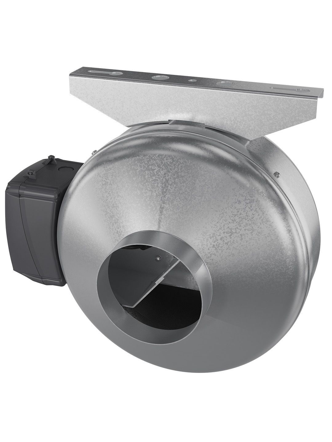 Коммерческий канальный центробежный вентилятор, выполненный в корпусе из оцинкованной стали. Предназначен для установки в любой точке приточно-вытяжной вентиляционной системы и под любым углом. В вентилятор устанавливается однофазный двигатель на шарикоподшипниках с внешним ротором, который оснащен рабочим колесом с загнутыми назад пластиковыми лопатками. Мотор имеет тепловую защиту с автоматическим перезапуском. Подключение осуществляется в герметичной клеммной коробке с откидной крышкой. Степень защиты оболочки электрооборудования от проникновения твердых частиц и воды – IPX4, двигателя – IP44. В коробку с вентилятором вкладывается кронштейн для монтажа к поверхности и два винта для крепления кронштейна к корпусу.