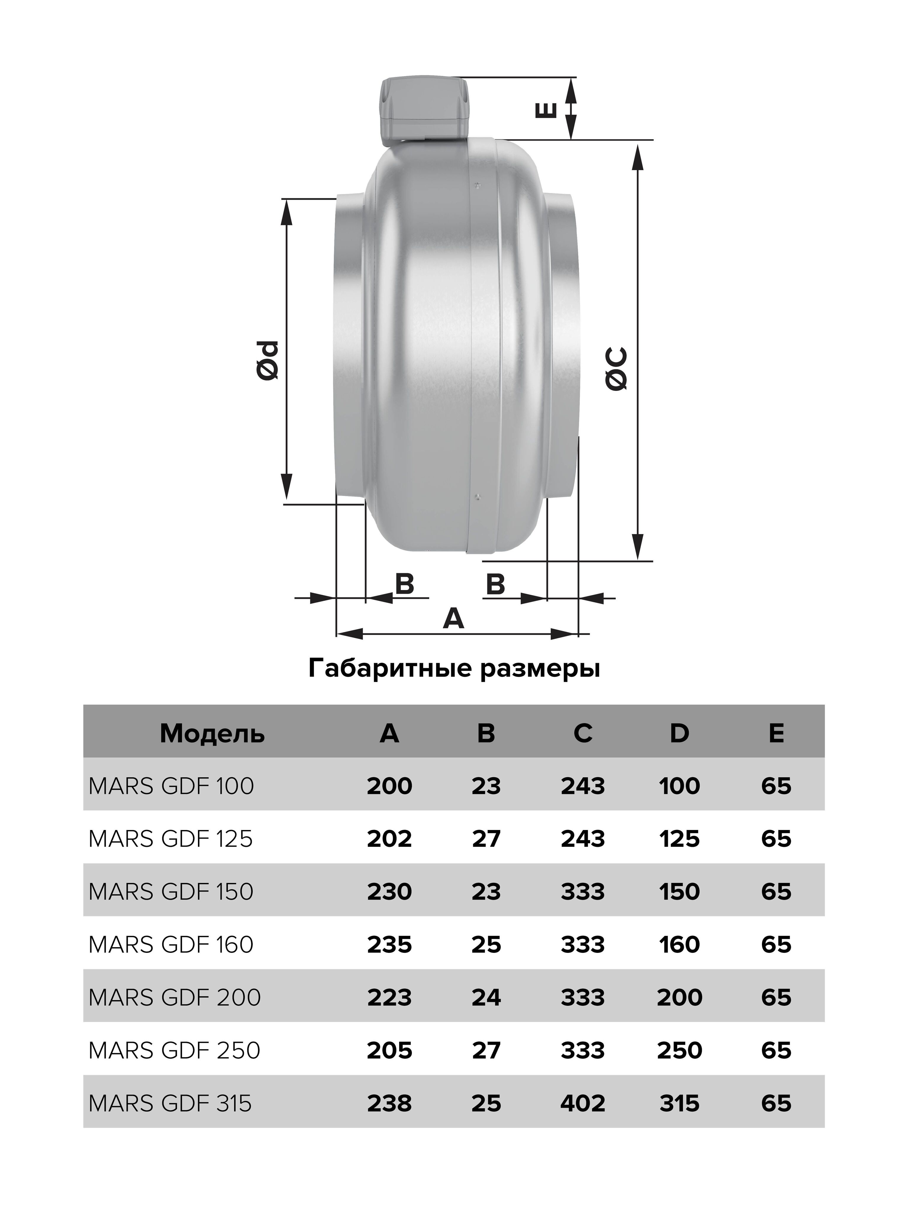 Вентилятор канальный MARS D100 центробежный GDF ERA PRO
