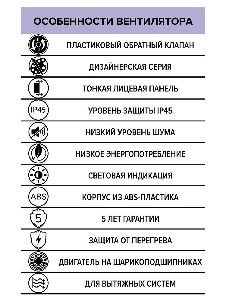 Долговечный двигатель на шарикоподшипниках не требует дополнительного обслуживания и гарантирует до 40 000 часов непрерывной работы, предохранитель Termo fuse отключит вентилятор при нагреве обмотки свыше +130 °C. SLIM можно установить как в стену, так и в потолок.