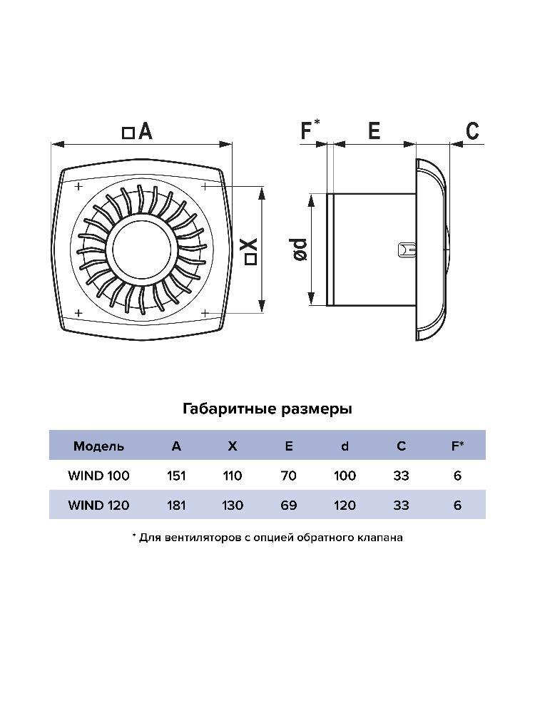 Вентилятор накладной WIND D100 обр.клапан двигатель BB ERA