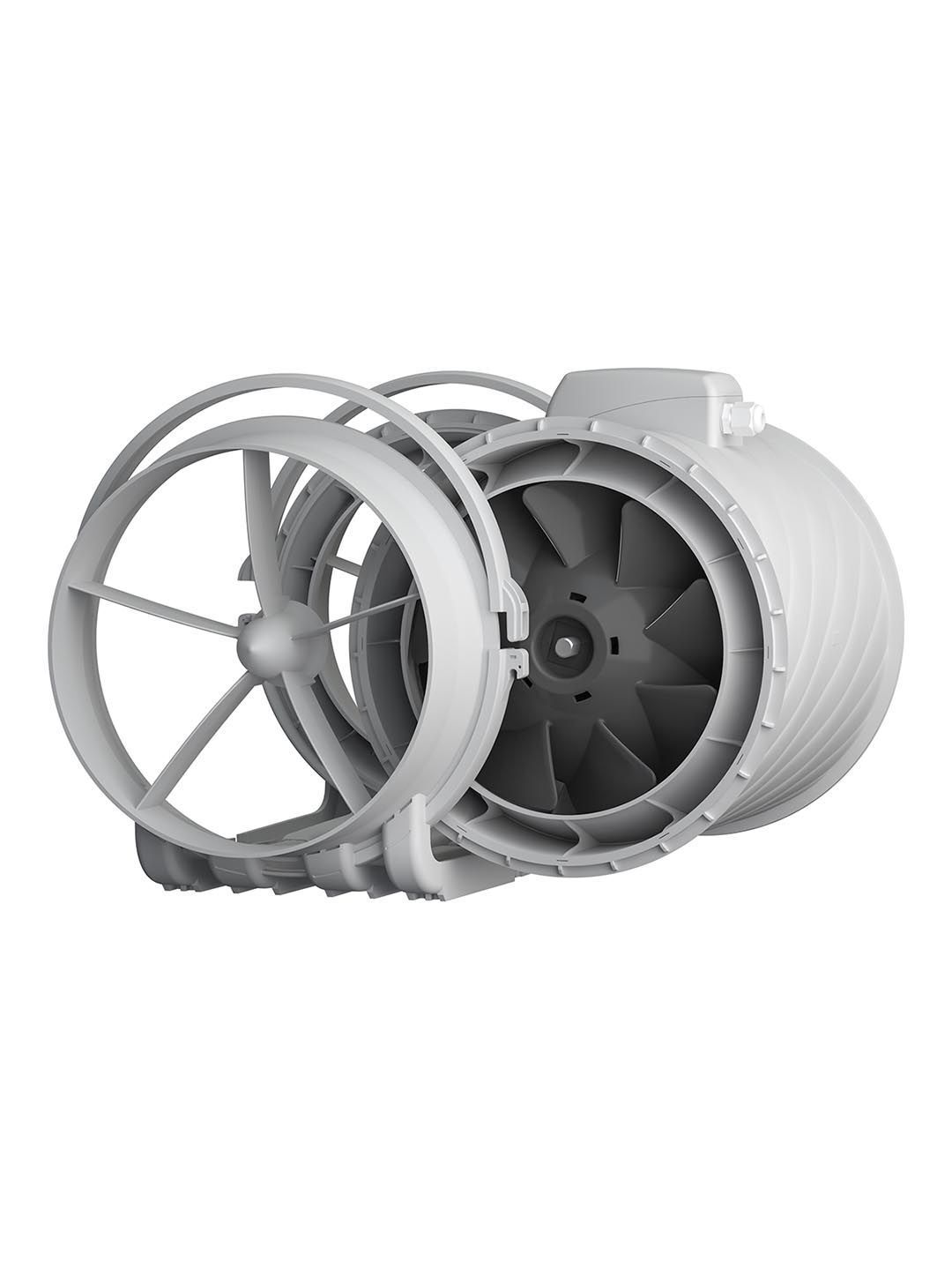 Канальный осевой вентилятор смешанного типа в корпусе из пластика. Предназначен для приточно-вытяжных систем вентиляции промышленных, общественных и жилых зданий. Имеет разборную конструкцию, что упрощает обслуживание: съемный центральный блок с двигателем, крыльчаткой и клеммной коробкой крепится к боковым патрубкам металлическими хомутами. В TYPHOON 250 2SP устанавливается двухскоростной однофазный двигатель на шарикоподшипниках с длительным сроком службы, встроенной тепловой защитой и автоматическим перезапуском. Вентилятор имеет две скорости работы, выбор скорости осуществляется при подключении питания к клеммам, либо с помощью кнопки (входит в комплект). Устройство подходит для горизонтального и вертикального монтажа, крепление к поверхности осуществляется с помощью саморезов.