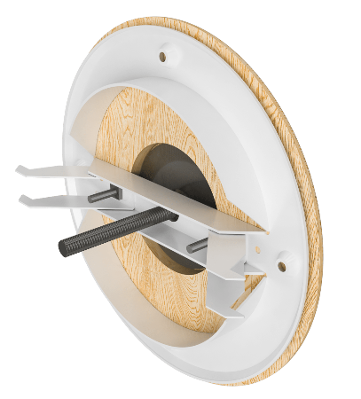 DW разработан специально для бань, саун и деревянных домов. Состоит из двух частей: обтекатель выполнен из сосны, а корпус из стали, благодаря чему анемостат легко выдерживает высокие температуры. Изделие можно установить в вентиляционную шахту или соединить с воздуховодом. Поток воздуха регулируется вращением обтекателя. Серия анемостатов DW MS имеет специальное крепление, которое позволяет легко монтировать устройство в воздуховод.