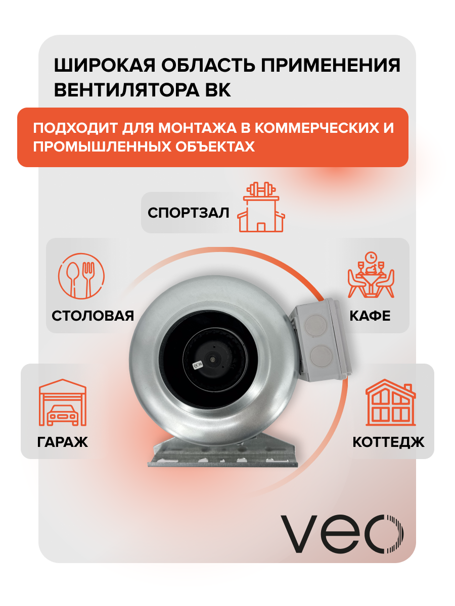 Коммерческий канальный центробежный вентилятор, выполненный в корпусе из оцинкованной стали. Предназначен для установки в любой точке приточно-вытяжной вентиляционной системы и под любым углом. В вентилятор устанавливается однофазный двигатель на шарикоподшипниках с внешним ротором, который оснащен рабочим колесом с загнутыми назад пластиковыми лопатками. Мотор имеет тепловую защиту с автоматическим перезапуском. Подключение осуществляется в герметичной клеммной коробке с откидной крышкой. Степень защиты оболочки электрооборудования от проникновения твердых частиц и воды – IPX4, двигателя – IP44. В коробку с вентилятором вкладывается кронштейн для монтажа к поверхности и два винта для крепления кронштейна к корпусу.