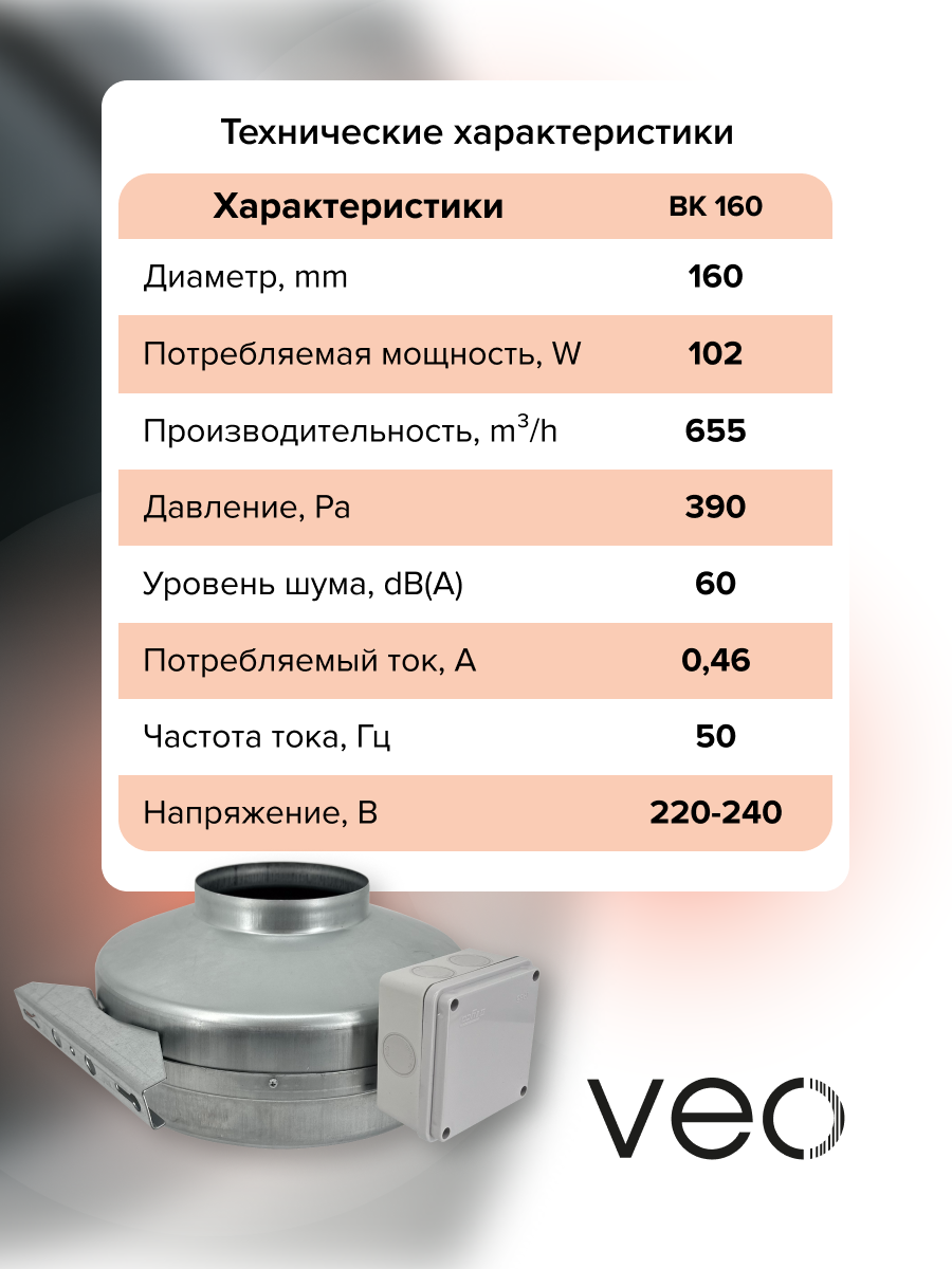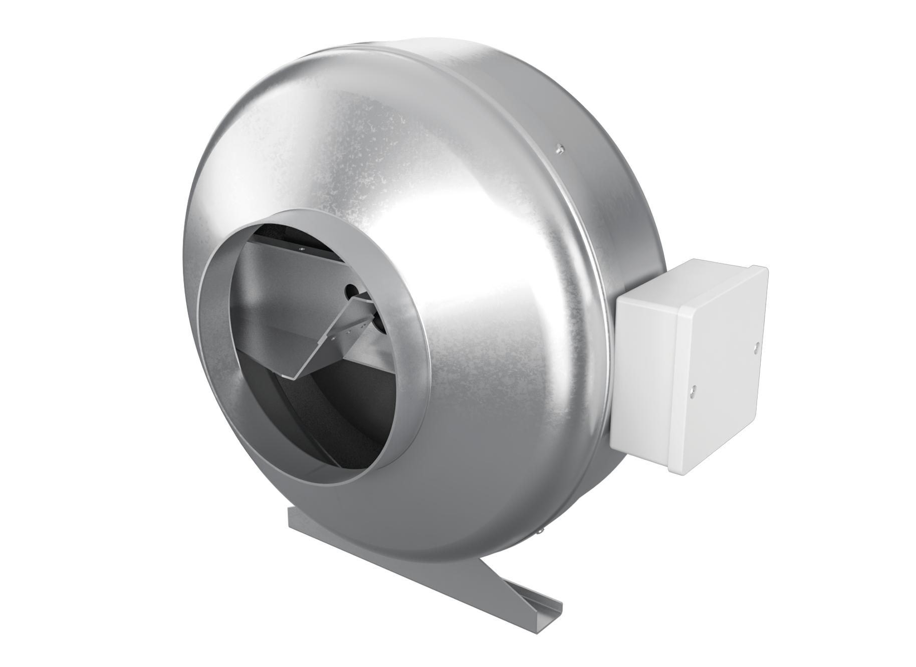 Коммерческий канальный центробежный вентилятор, выполненный в корпусе из оцинкованной стали. Предназначен для установки в любой точке приточно-вытяжной вентиляционной системы и под любым углом. В вентилятор устанавливается однофазный двигатель на шарикоподшипниках с внешним ротором, который оснащен рабочим колесом с загнутыми назад пластиковыми лопатками. Мотор имеет тепловую защиту с автоматическим перезапуском. Подключение осуществляется в герметичной клеммной коробке с откидной крышкой. Степень защиты оболочки электрооборудования от проникновения твердых частиц и воды – IPX4, двигателя – IP44. В коробку с вентилятором вкладывается кронштейн для монтажа к поверхности и два винта для крепления кронштейна к корпусу.