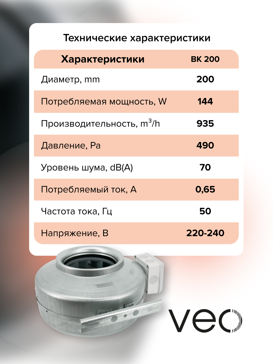 Вентилятор канальный BK D200 центробежный