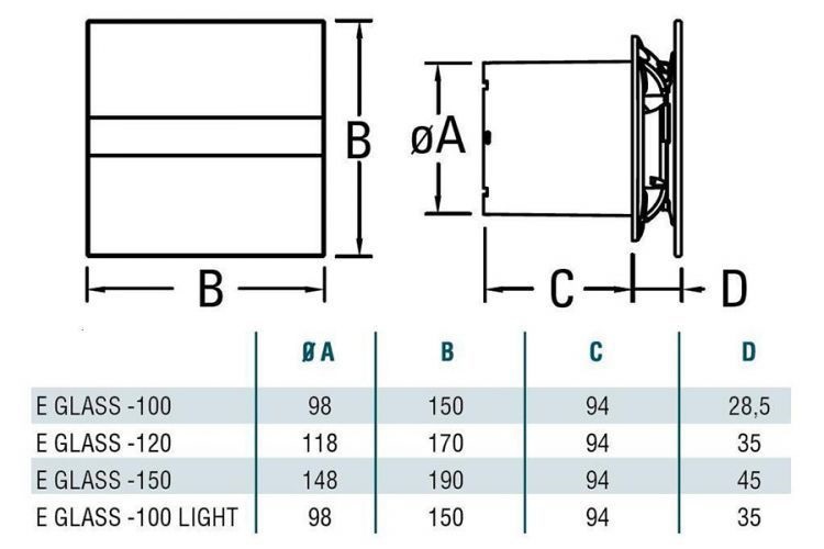 Дизайнерской изюминкой является фронтальная панель, выполненная из стекла, что позволяет использовать его в любых помещениях. Он - вентилятор для ванной комнаты и вентилятор для туалета. Вентилятор Cata E-100 G LIGHT (с LED подсветкой и таймером) гармонично вписывается под любую плитку.