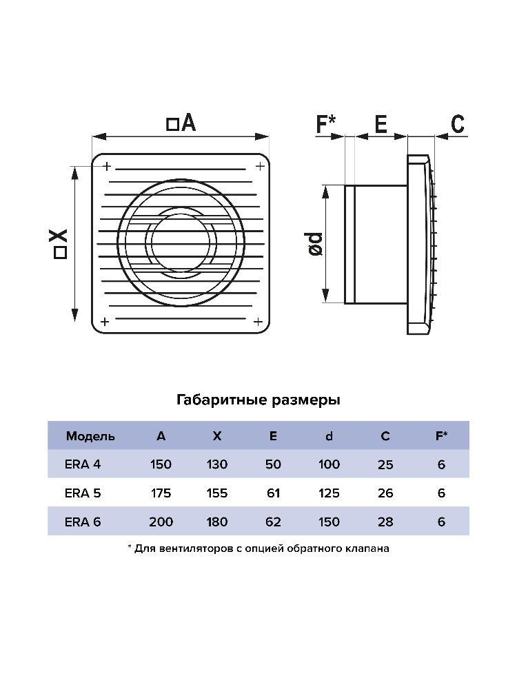 Вентилятор накладной ERA D125 обр.клапан тяг.выкл. ERA