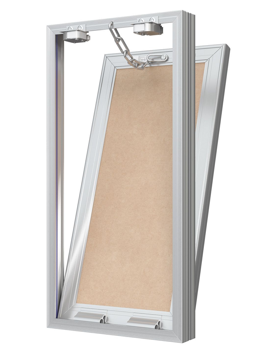 Люки ревизионные под плитку D Ceramo Base с фронтальным открытием дверцы предназначены для скрытого доступа и обслуживания инженерных, сантехнических, электрических и прочих коммуникаций. Люки устанавливаются в нишах стен и перегородок, изготовленных из кладочных (кирпич, бетон, пенобетон и др.) или листовых (гипсокартон и др.) материалов. Открываются и закрываются легким нажатием на дверцу, после закрытия надежно фиксируются в раме. Люки изготавливаются из алюминиевого профиля. Дверца заполнена влагостойким гипсокартоном (ГКЛВ). Конструкция оснащена нажимным замком, резиновым уплотнителем, страховочным механизмом для безопасного открытия дверцы, имеет возможность полного снятия дверцы. Максимальный угол открытия — 180 градусов.