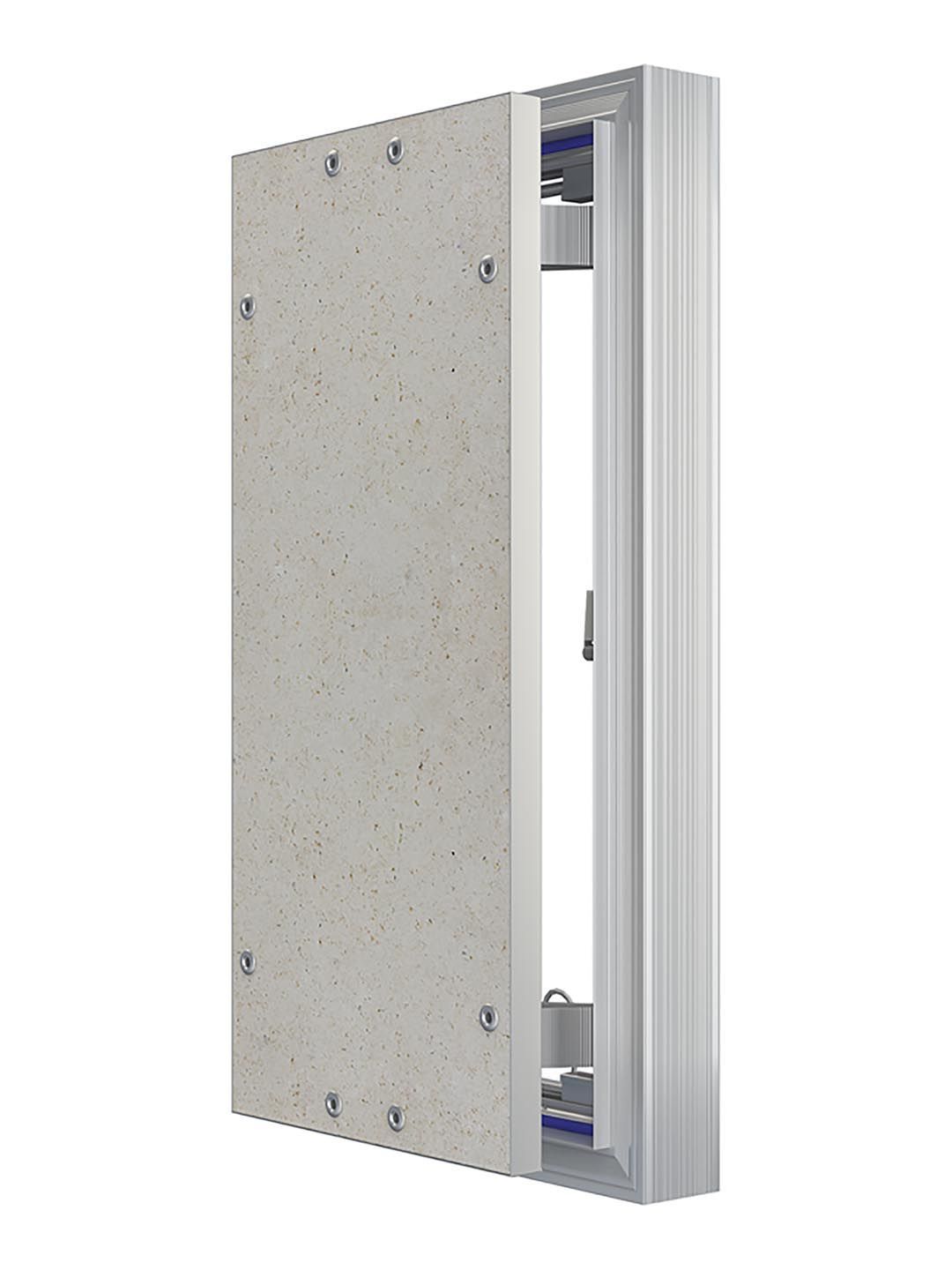 Скрытые ревизионные люки под плитку D CERAMO OPTIMUM предназначены для скрытия инженерных коммуникаций, использования в качестве декоративных экранов под ванную, оформления ниш для сейфов или полок под бытовую химию. Распашная дверца с фронтальным открытием люка сохраняет общий рисунок поверхности без подрезки и подгонки плитки. Петля регулируется как по вертикали, так и по горизонтали. Возможно изготовление специальных изделий. ОСОБЕННОСТИ КОНСТРУКЦИИ 1. Дверца люка заполнена влагостойким гипсоволокнистым листом. 2. Долговечный резиновый уплотнитель по периметру рамы люка обеспечивает защиту инженерных коммуникаций от пыли и влаги. 3. Надежная фиксация при помощи специального нажимного замка. 4. Рама конструкции изготовлена из алюминиевого профиля.