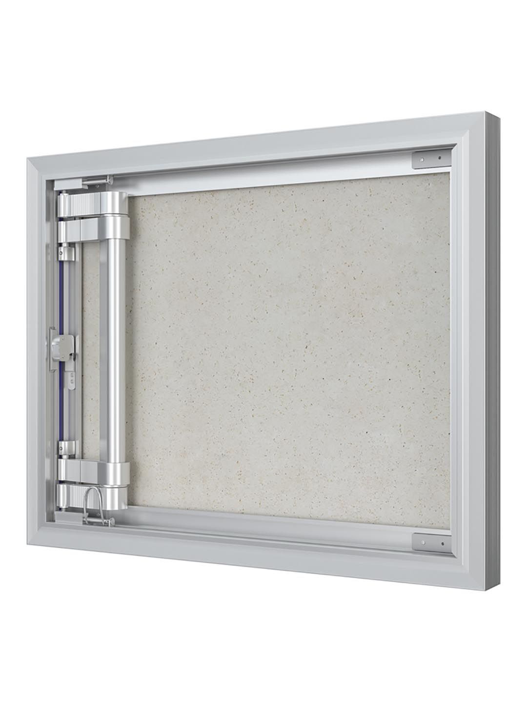 Скрытые ревизионные люки под плитку D CERAMO OPTIMUM предназначены для скрытия инженерных коммуникаций, использования в качестве декоративных экранов под ванную, оформления ниш для сейфов или полок под бытовую химию. Распашная дверца с фронтальным открытием люка сохраняет общий рисунок поверхности без подрезки и подгонки плитки. Петля регулируется как по вертикали, так и по горизонтали. Возможно изготовление специальных изделий. ОСОБЕННОСТИ КОНСТРУКЦИИ 1. Дверца люка заполнена влагостойким гипсоволокнистым листом. 2. Долговечный резиновый уплотнитель по периметру рамы люка обеспечивает защиту инженерных коммуникаций от пыли и влаги. 3. Надежная фиксация при помощи специального нажимного замка. 4. Рама конструкции изготовлена из алюминиевого профиля.