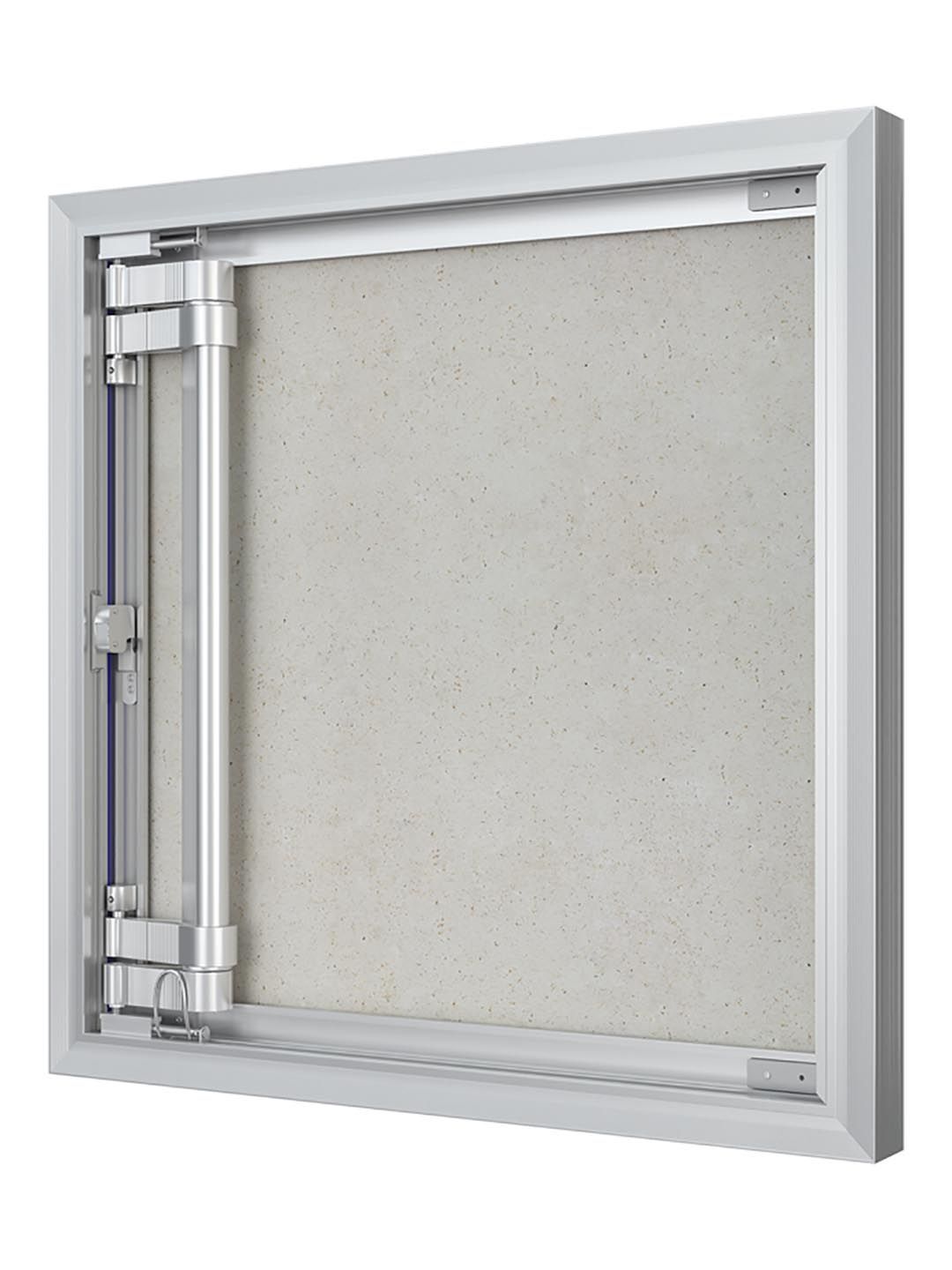 Скрытые ревизионные люки под плитку D CERAMO OPTIMUM предназначены для скрытия инженерных коммуникаций, использования в качестве декоративных экранов под ванную, оформления ниш для сейфов или полок под бытовую химию. Распашная дверца с фронтальным открытием люка сохраняет общий рисунок поверхности без подрезки и подгонки плитки. Петля регулируется как по вертикали, так и по горизонтали. Возможно изготовление специальных изделий. ОСОБЕННОСТИ КОНСТРУКЦИИ 1. Дверца люка заполнена влагостойким гипсоволокнистым листом. 2. Долговечный резиновый уплотнитель по периметру рамы люка обеспечивает защиту инженерных коммуникаций от пыли и влаги. 3. Надежная фиксация при помощи специального нажимного замка. 4. Рама конструкции изготовлена из алюминиевого профиля.