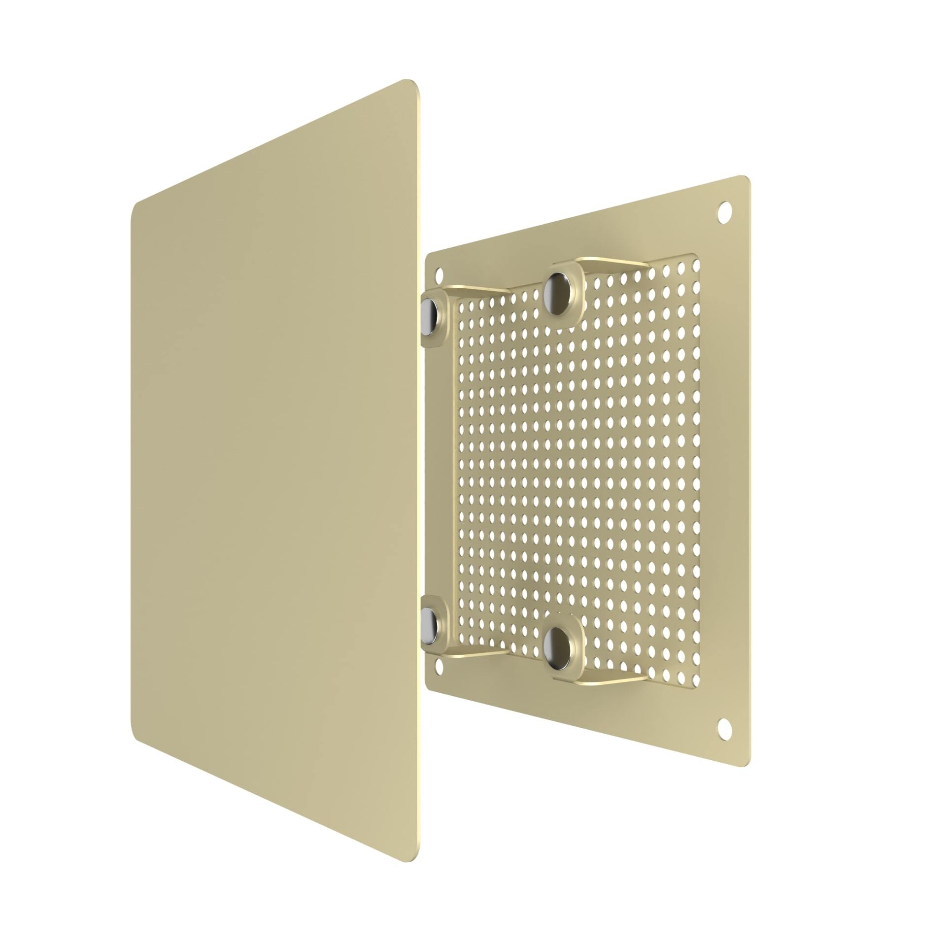 RVM состоит из двух частей. Рамка с сеткой и магнитами крепится к поверхности при помощи саморезов или клея, декоративная панель фиксируется на рамку с помощью магнитов, благодаря чему легко снимается для обслуживания решетки, скрывает вентиляционное отверстие и крепление рамки. За счет такой конструкции доступ воздуха в шахту не перекрывается и происходит его равномерное распределение.