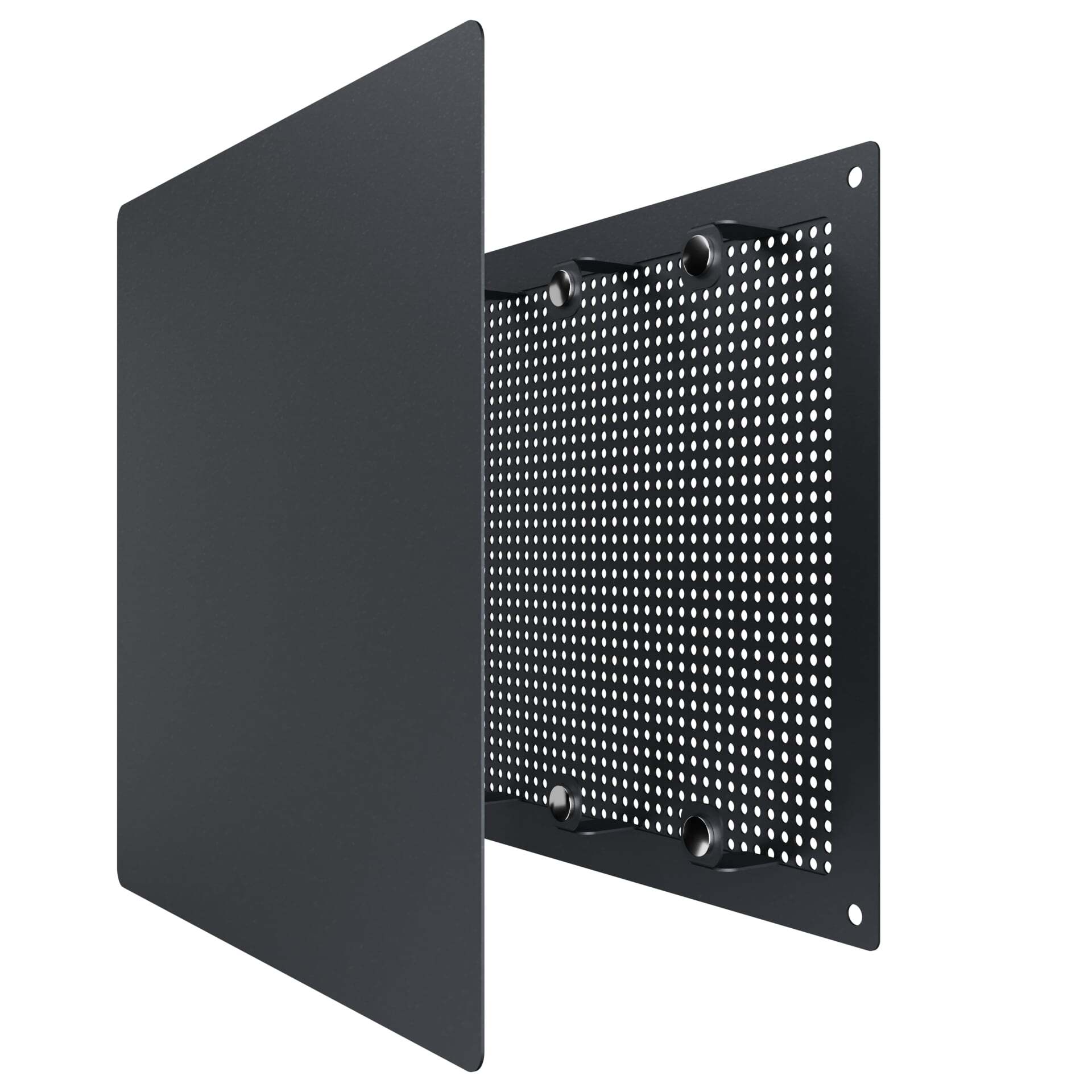 RVM состоит из двух частей. Рамка с сеткой и магнитами крепится к поверхности при помощи саморезов или клея, декоративная панель фиксируется на рамку с помощью магнитов, благодаря чему легко снимается для обслуживания решетки, скрывает вентиляционное отверстие и крепление рамки. За счет такой конструкции доступ воздуха в шахту не перекрывается и происходит его равномерное распределение.