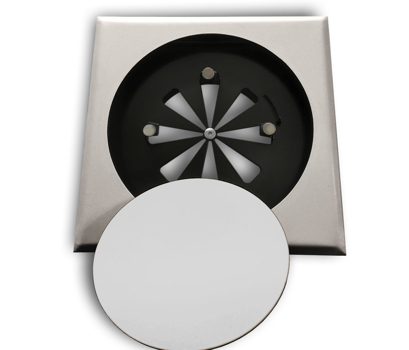 Благодаря магнитам, крепление получается невидимым что не портит внешний вид, и позволяет без труда снимать решетку для обслуживания системы.