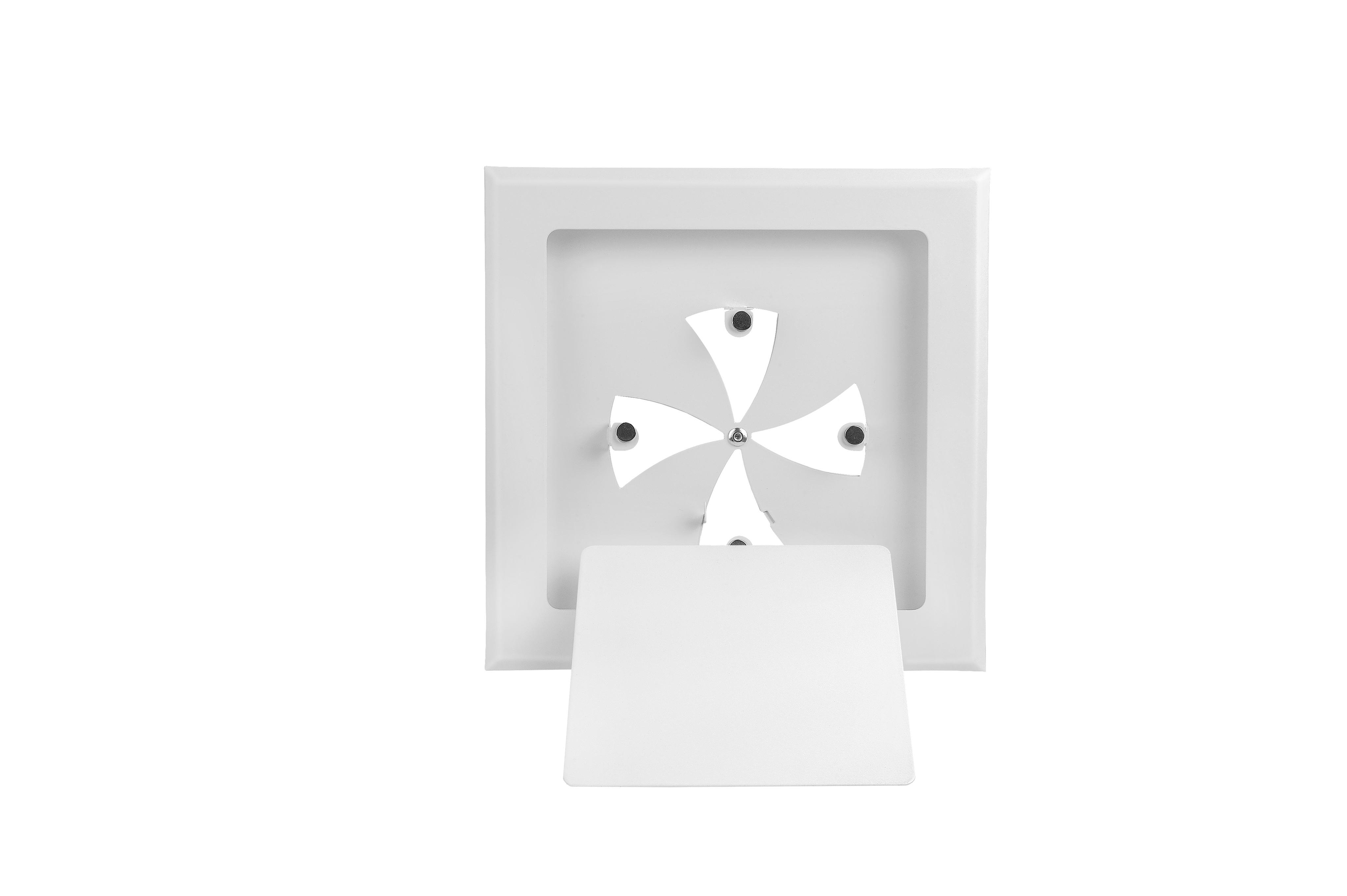 На монтажной рамке закреплены неодимовые магниты, которые крепко держат саму декоративную решетку.