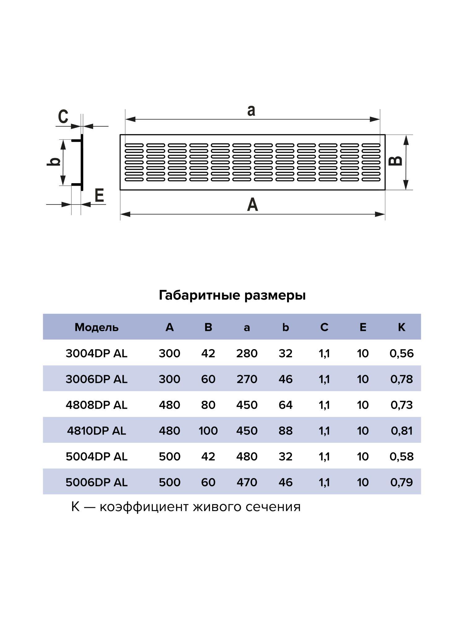 Металлическая вентиляционная переточная решетка DP AL способствует правильной циркуляции воздуха под кухонными шкафами и другими предметами мебели. Решетка устанавливается в мебельный цоколь – декоративную планку, закрывающую пространство под нижними мебельными модулями. Отводит тепло от встраиваемой техники. Возможна установка в подоконник для равномерного распределения воздушных потоков из радиаторов отопления. Решетка изготавливается из алюминиевого сплава и является вандалоустойчивой.