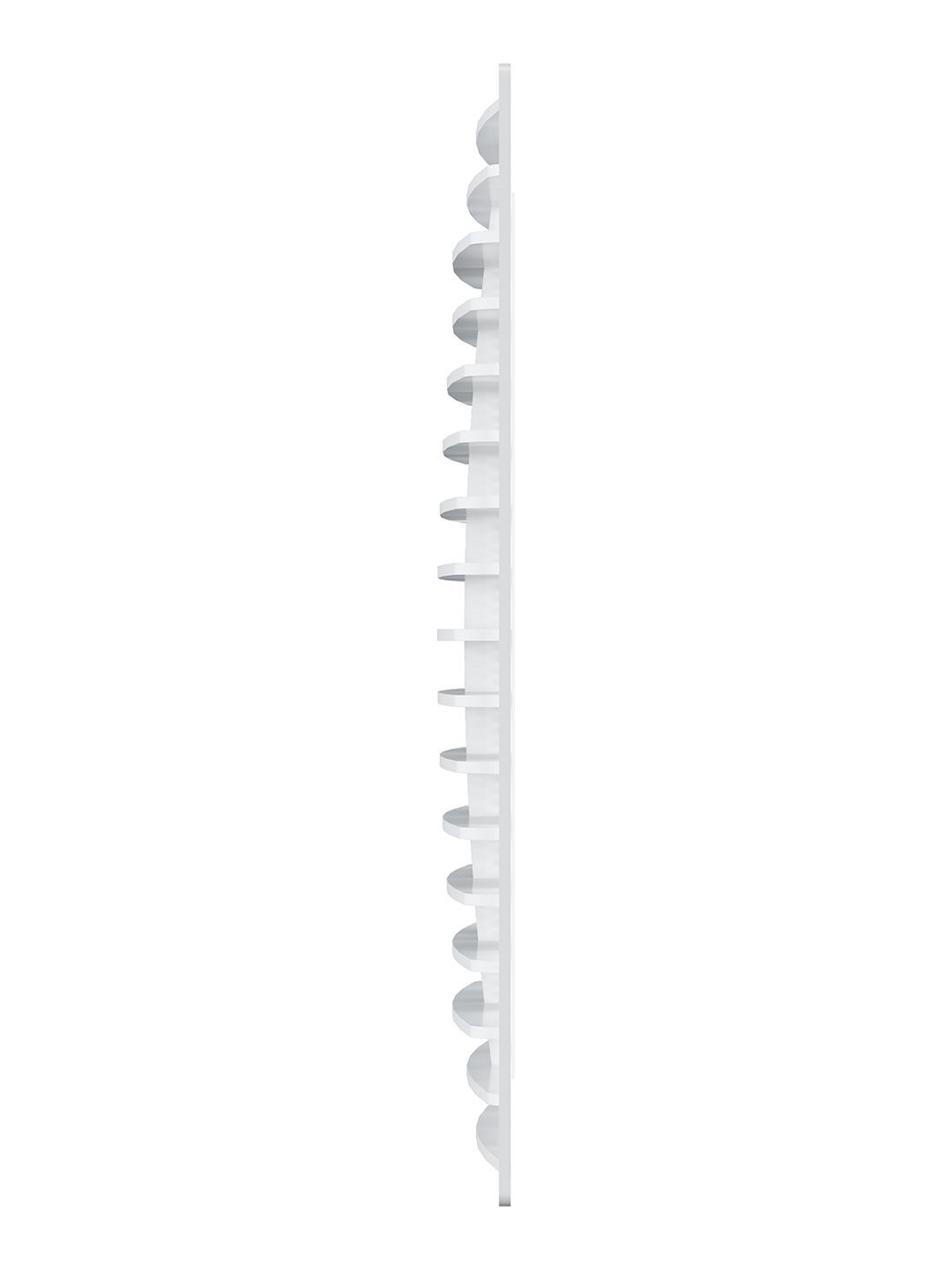 Прямые жалюзи решетки Г обеспечивают большую пропускную способность по сравнению с наклонными. Поэтому изделие подходит для помещений, в которых требуется более интенсивный воздухообмен. Имеет небольшую толщину (11–13 мм). Закрытый контур решетки скрывает неровности вентиляционного канала.