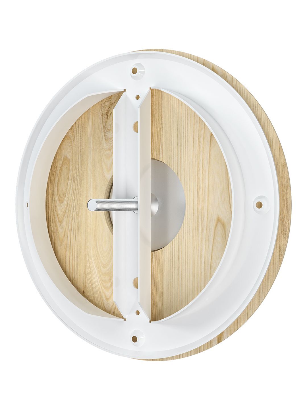 DW разработан специально для бань, саун и деревянных домов. Состоит из двух частей: обтекатель выполнен из сосны, а корпус из стали, благодаря чему анемостат легко выдерживает высокие температуры. Изделие можно установить в вентиляционную шахту или соединить с воздуховодом. Поток воздуха регулируется вращением обтекателя.