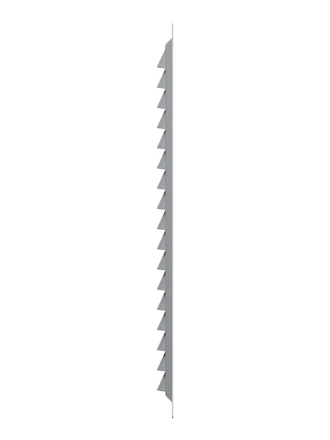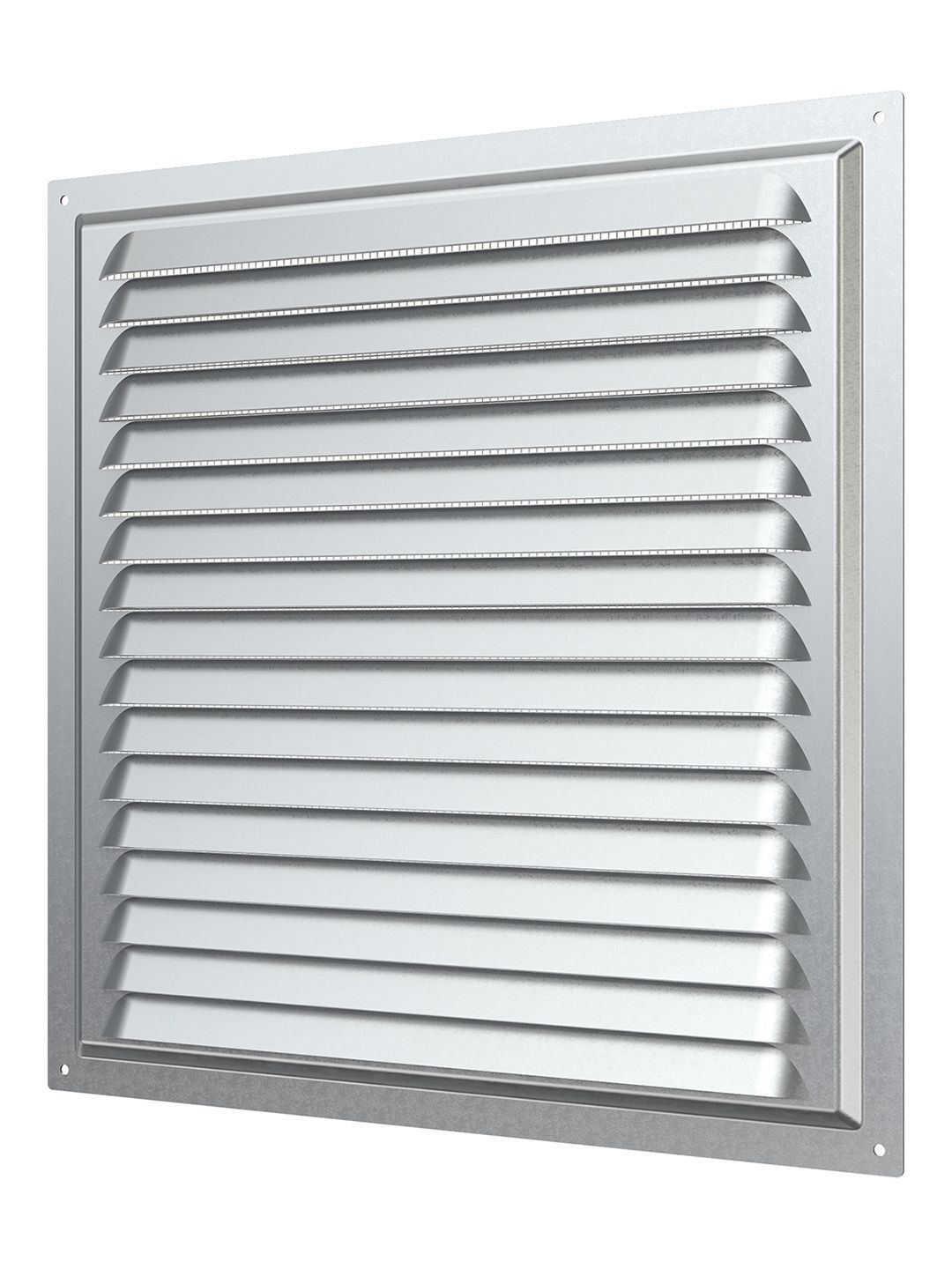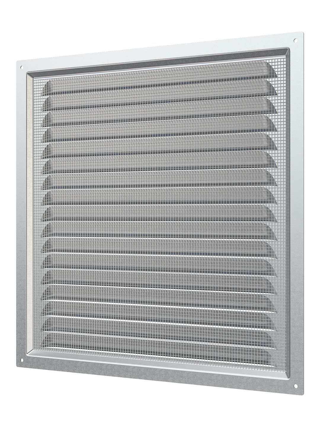 Вентиляционная решетка МЦ изготавливается из оцинкованной стали. Имеет наклонные жалюзи и антимоскитную сетку для защиты от насекомых. Сетка устанавливается в специальном углублении.