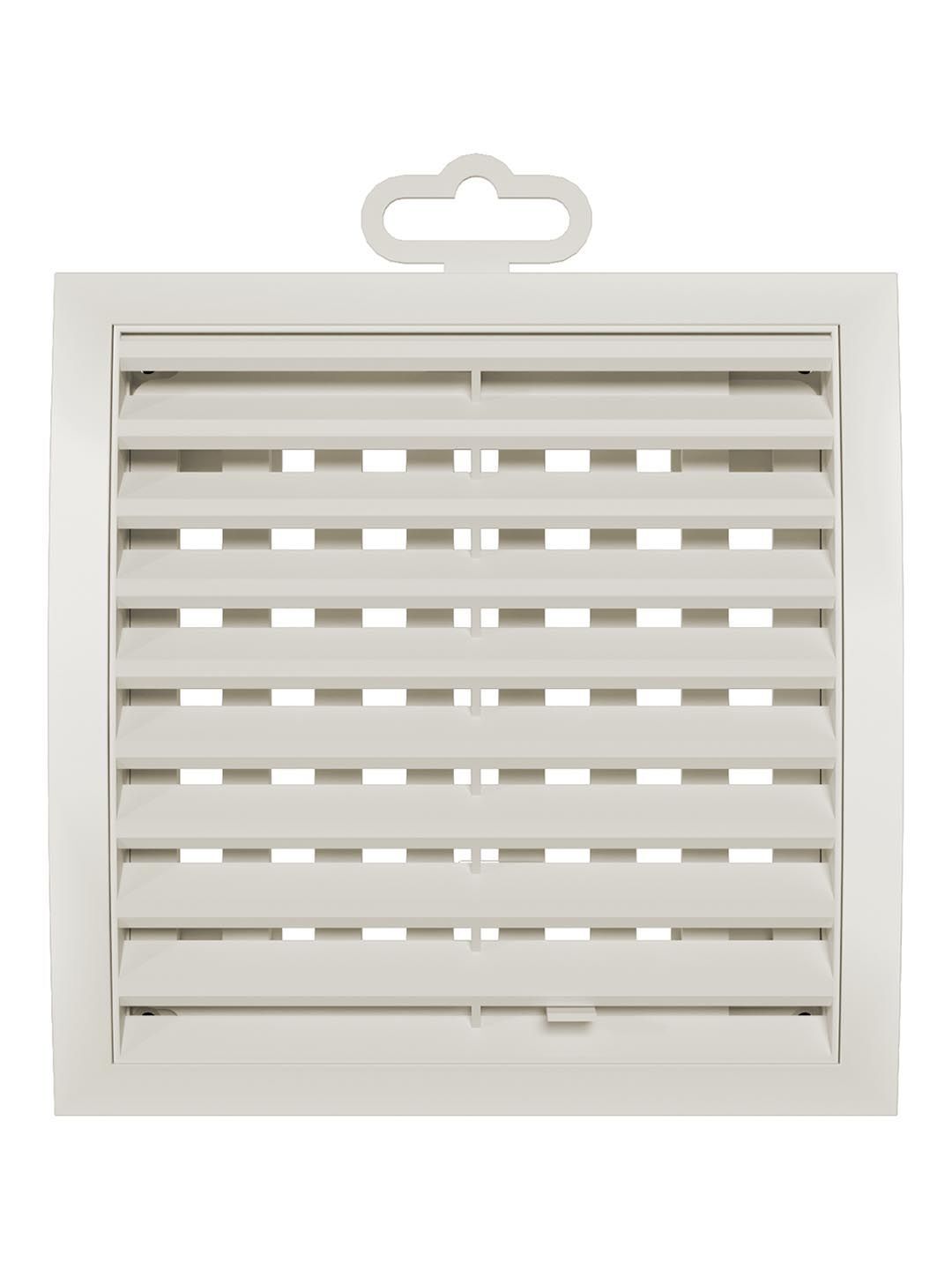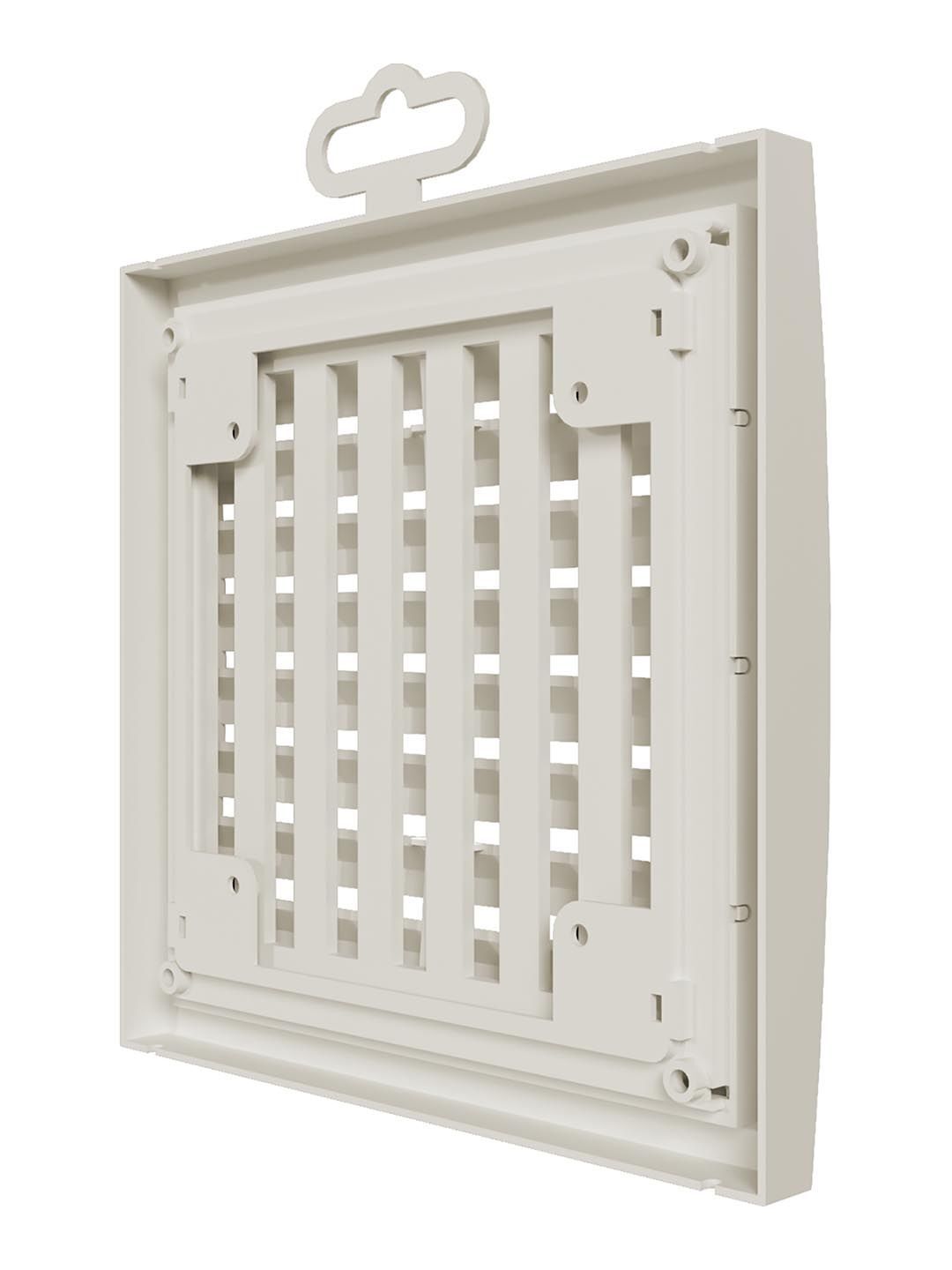 Разъемная решетка РРП оснащена подвижными частями для регулировки потока воздуха, нужное положение выбирается перемещением флажка. Наклонные жалюзи скрывают шахту вентиляции и придают ей эстетичный вид. Доступна в белом цвете и Ivory.