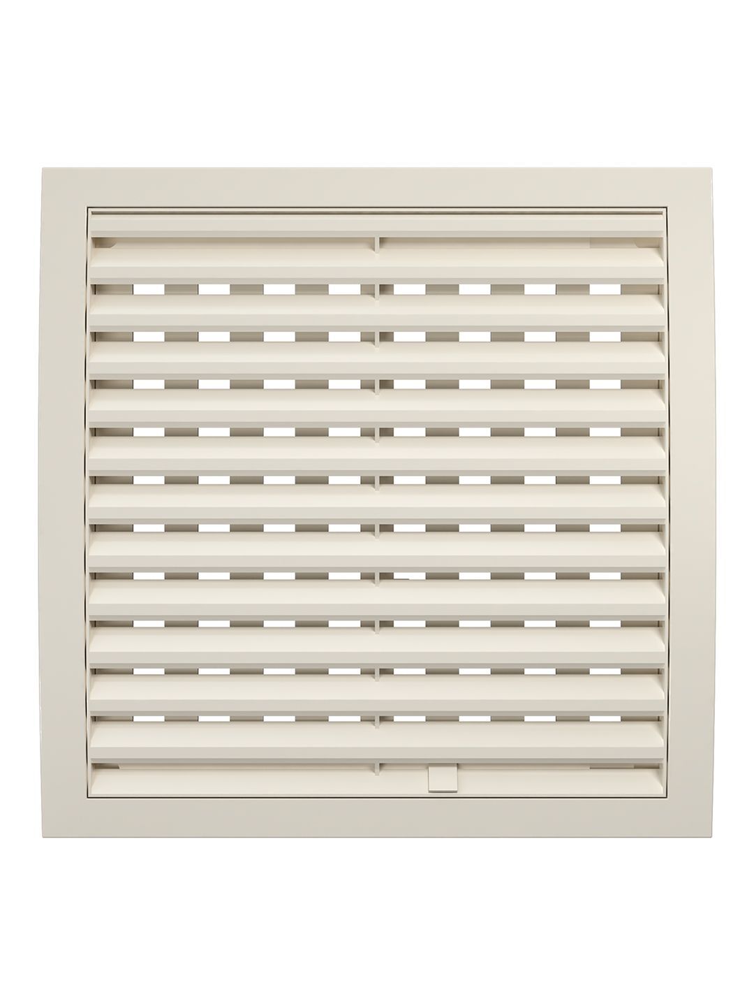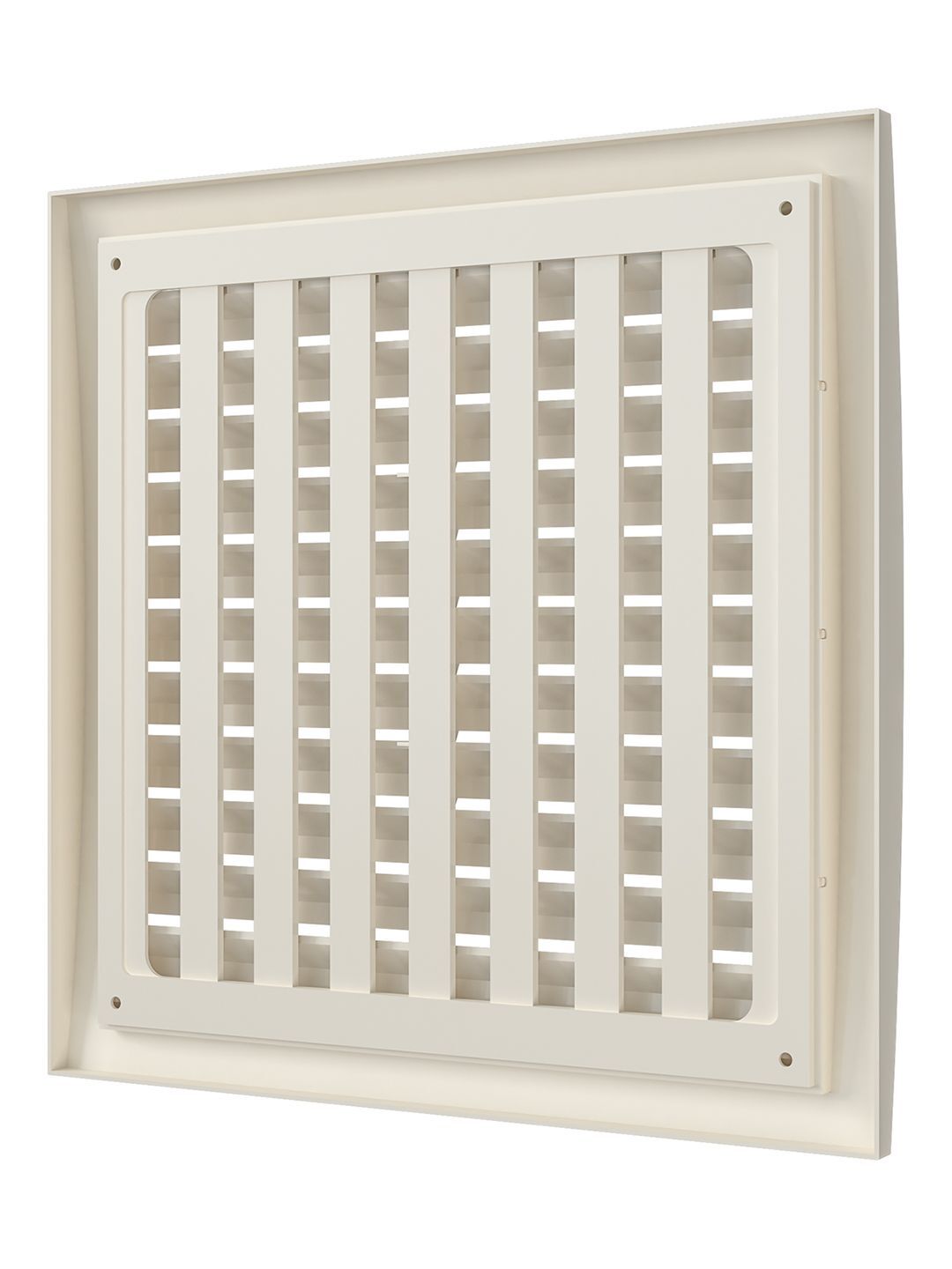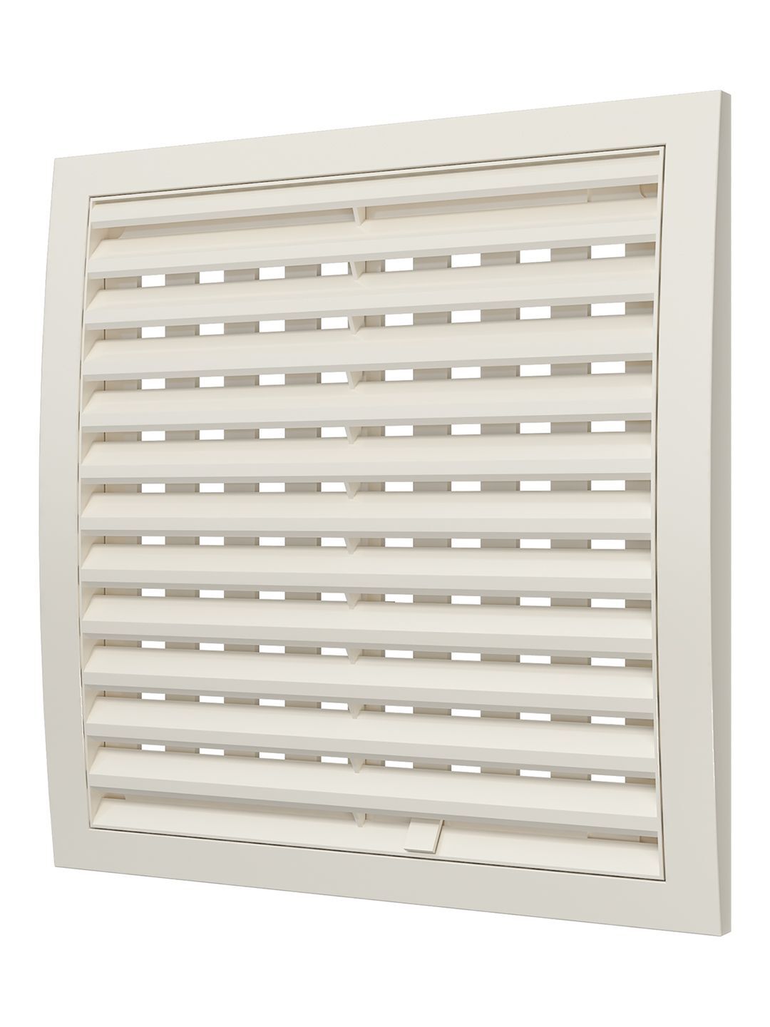 Разъемная решетка РРП оснащена подвижными частями для регулировки потока воздуха, нужное положение выбирается перемещением флажка. Наклонные жалюзи скрывают шахту вентиляции и придают ей эстетичный вид. Доступна в белом цвете и Ivory.
