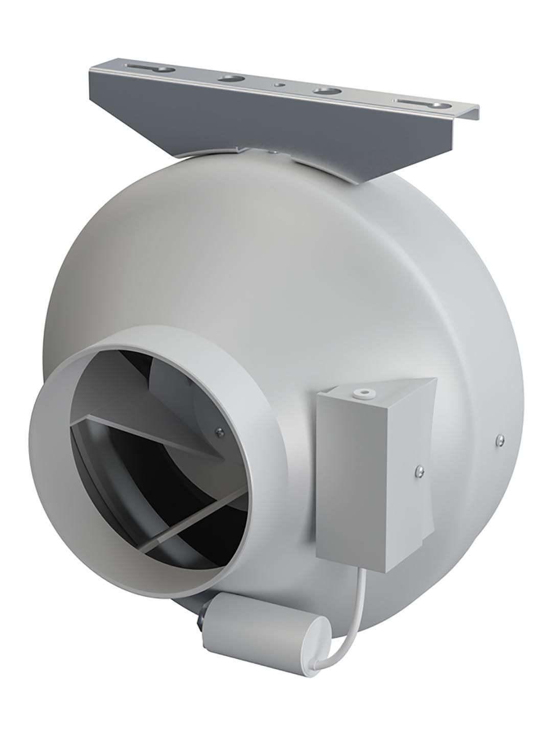 Коммерческий канальный центробежный вентилятор, выполненный в корпусе из высокопрочного пластика. Благодаря материалу изготовления имеет высокую стойкость к коррозии и хорошо подходит для помещений с повышенной влажностью. Предназначен для установки в любой точке приточно-вытяжной вентиляционной системы и под любым углом. В вентилятор устанавливается однофазный двигатель с внешним ротором, оснащенным рабочим колесом с загнутыми назад лопатками. Мотор имеет тепловую защиту с автоматическим перезапуском. Подключение к сети осуществляется в герметичной клеммной коробке, степень защиты оболочки электрооборудования от проникновения твердых частиц и воды – IPX4, двигателя – IP44. В коробку с вентилятором вкладывается кронштейн для монтажа к поверхности и два винта для крепления кронштейна к корпусу.