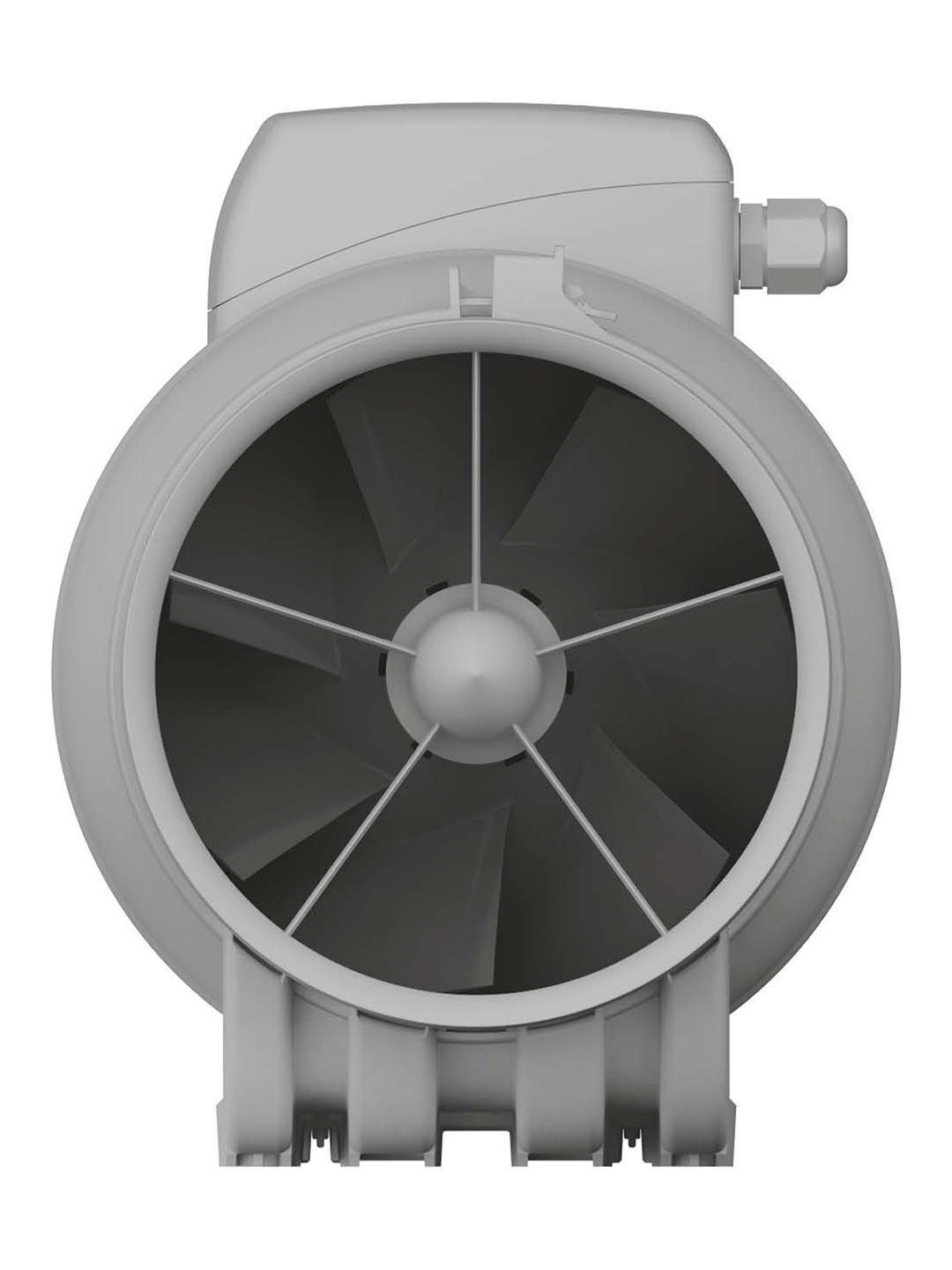Канальный осевой вентилятор смешанного типа в корпусе из пластика. Предназначен для приточно-вытяжных систем вентиляции промышленных, общественных и жилых зданий. Имеет разборную конструкцию, что упрощает обслуживание: съемный центральный блок с двигателем, крыльчаткой и клеммной коробкой крепится к боковым патрубкам пластиковыми хомутами. В TYPHOON 160 2SP устанавливается двухскоростной однофазный двигатель на шарикоподшипниках с длительным сроком службы, встроенной тепловой защитой и автоматическим перезапуском. Асимметричная форма клеммной коробки облегчает подключение сетевого провода. Вентилятор имеет две скорости работы, выбор скорости осуществляется при подключении питания к клеммам, либо с помощью кнопки (входит в комплект, устанавливается самостоятельно по желанию пользователя). Устройство подходит для горизонтального и вертикального монтажа, крепление к поверхности осуществляется с помощью саморезов.