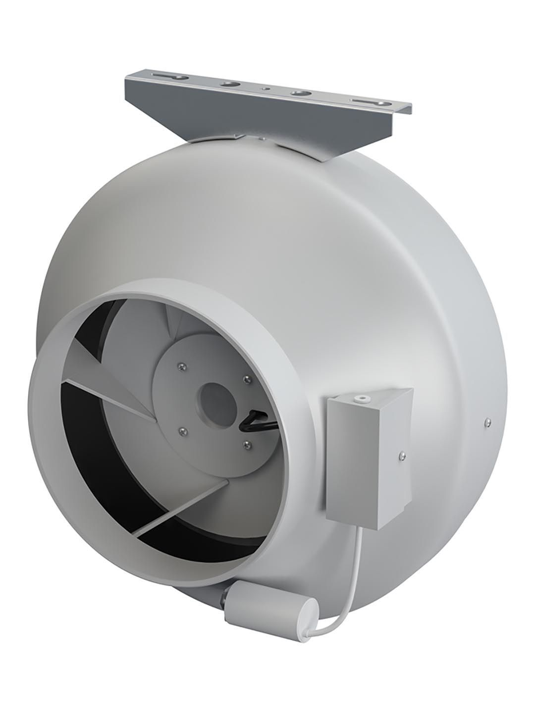 Коммерческий канальный центробежный вентилятор, выполненный в корпусе из высокопрочного пластика. Благодаря материалу изготовления имеет высокую стойкость к коррозии и хорошо подходит для помещений с повышенной влажностью. Предназначен для установки в любой точке приточно-вытяжной вентиляционной системы и под любым углом. В вентилятор устанавливается однофазный двигатель с внешним ротором, оснащенным рабочим колесом с загнутыми назад лопатками. Мотор имеет тепловую защиту с автоматическим перезапуском. Подключение к сети осуществляется в герметичной клеммной коробке, степень защиты оболочки электрооборудования от проникновения твердых частиц и воды – IPX4, двигателя – IP44. В коробку с вентилятором вкладывается кронштейн для монтажа к поверхности и два винта для крепления кронштейна к корпусу.