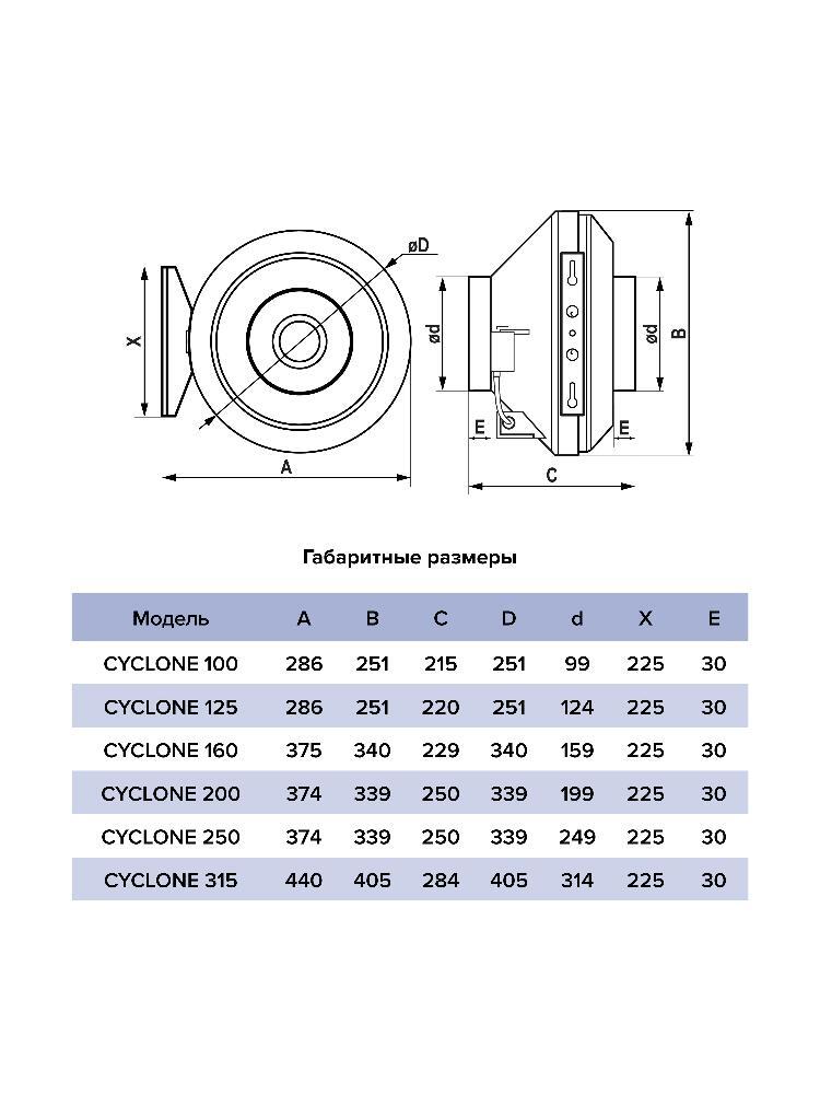 Вентилятор канальный CYCLONE D250 центробежный пластиковый корпус ERA PRO