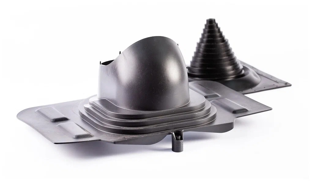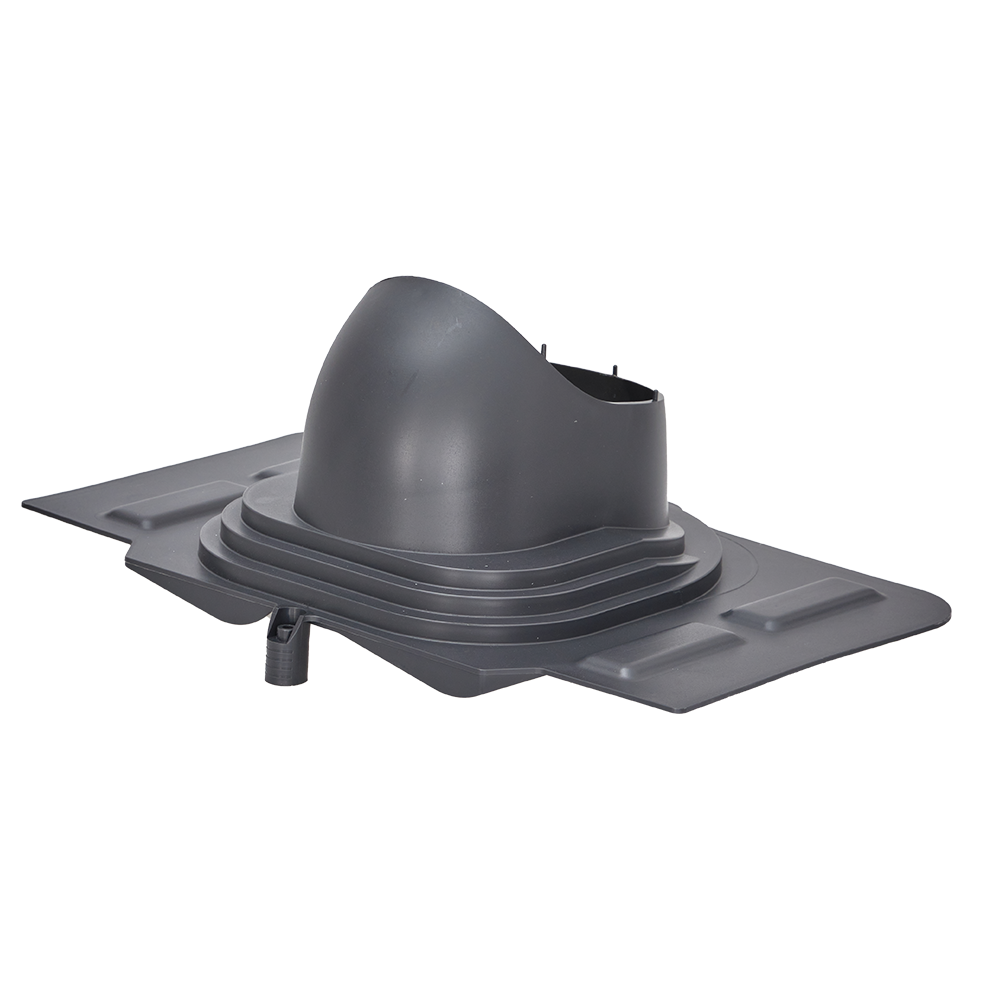 Применяется на кровлях из металлочерепицы или на других типах покрытия скатных кровель с любым типом профиля с высотой до 70 мм (в том числе и натуральная черепица при использовании сверла по стеклу и керамике, и саморезов для кирпича) для установки вентиляционных труб.