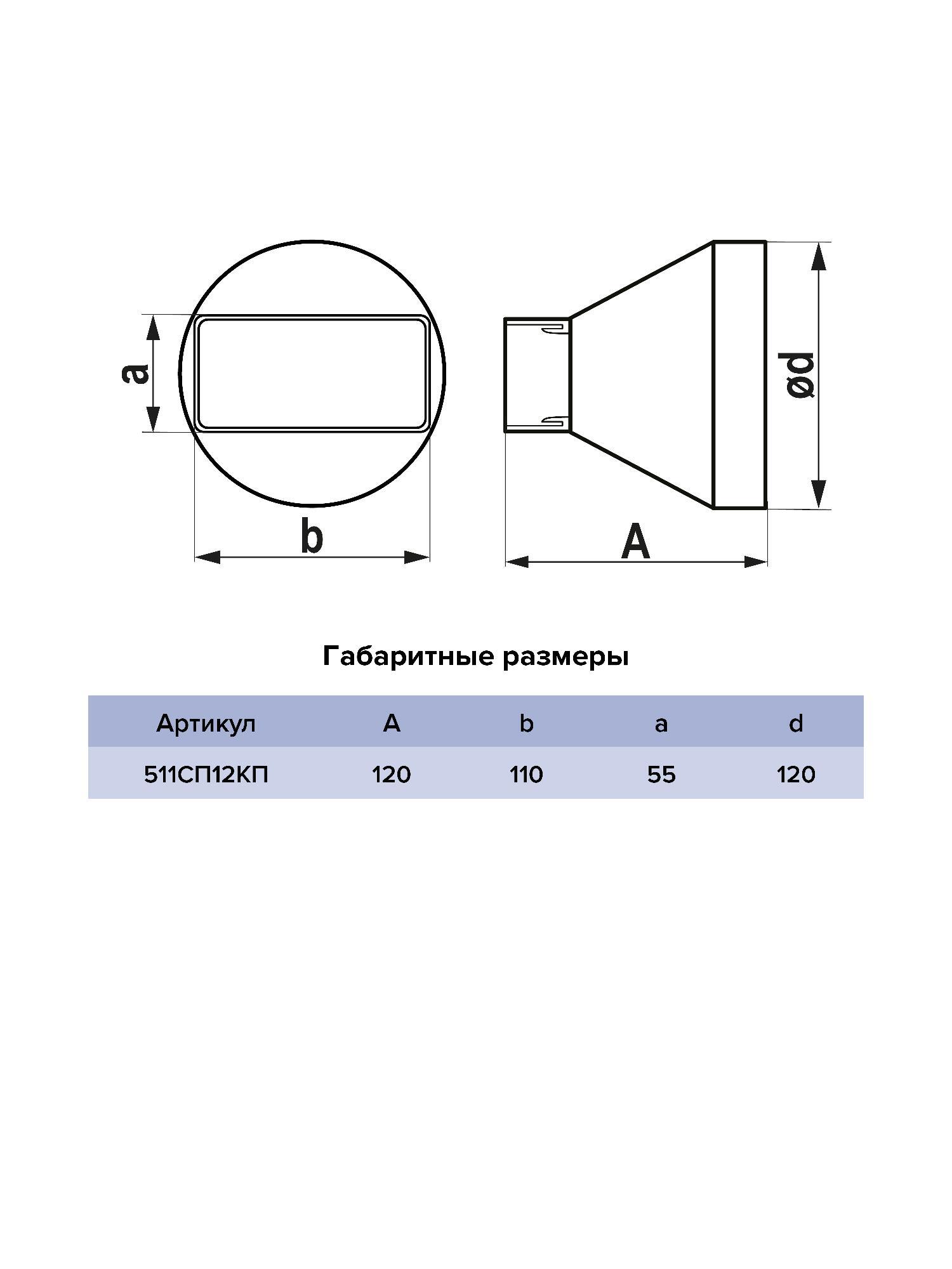 Переходник пластиковый — один из основных элементов, использующийся при монтаже кухонных вытяжек.  Предназначен для надежного соединения выходного отверстия 120 мм с воздуховодами 55х110 мм.