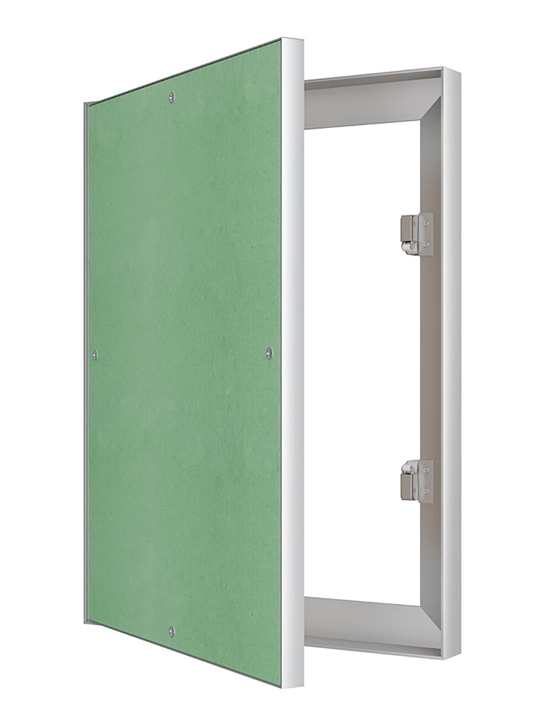 Скрытые ревизионные люки под покраску и обойные покрытия ЛПК предназначены для установки в заранее подготовленный короб из металлического профиля с последующей обшивкой листовым материалом и декорированием. Окрашиваются или оклеиваются под дизайн интерьера. Дверца люка заполнена влагостойким гипсокартоном, открывается и закрывается легким нажатием. Основная рама конструкции и рама панели изготовлены из алюминиевого профиля. Специальный механический замок обеспечивает надежную фиксацию дверцы. Возможно изготовление специальных изделий. ВАЖНО Рама люка крепится к каркасу саморезами с четырех сторон.