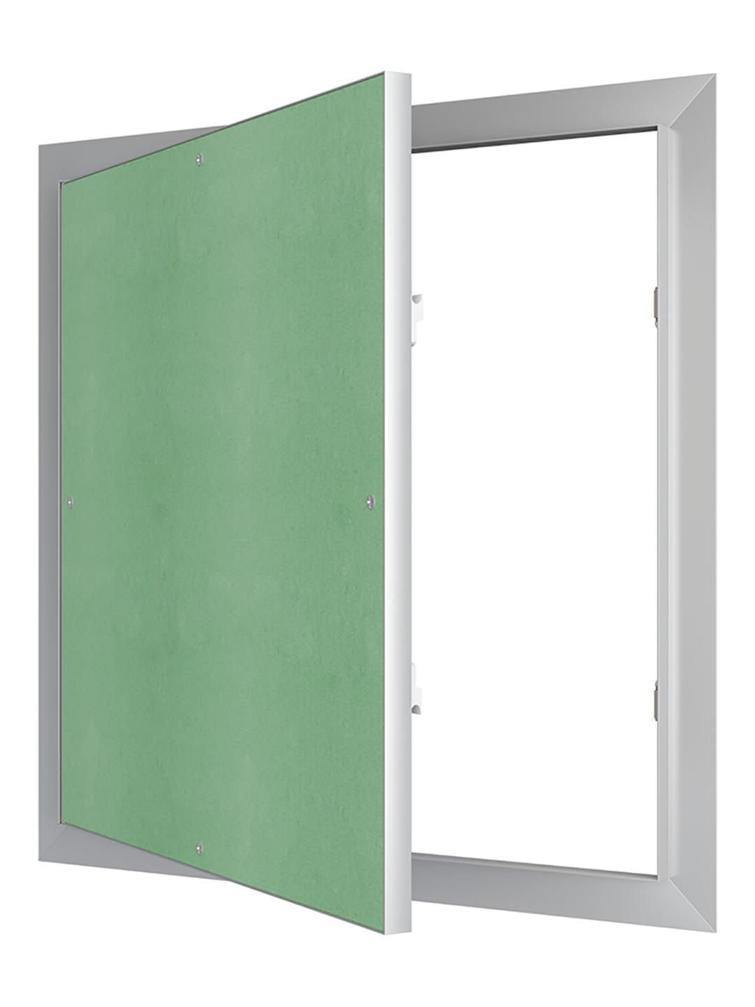 Скрытые ревизионные люки под покраску и обойные покрытия ЛПУ. Устанавливается в стены из листовых материалов с последующим креплением к нему. Дверца люка заполнена влагостойким гипсокартоном, поэтому ее можно грунтовать, шпаклевать, окрашивать или оклеивать под дизайн интерьера. Возможно изготовление специальных изделий. Для крепления саморезами требуется сделать отверстия одновременно в гипсокартоне и раме люка.
