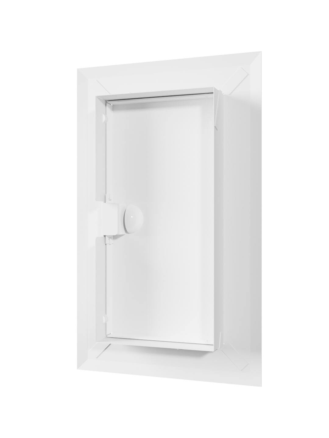 Устанавливается в стену. Оснащен ручкой для удобства открывания/закрывания люка, магнитными замками для фиксации дверцы в закрытом положении и предотвращения случайного открывания. По контуру дверцы имеется рамка, которая скрывает любые неровности проема.