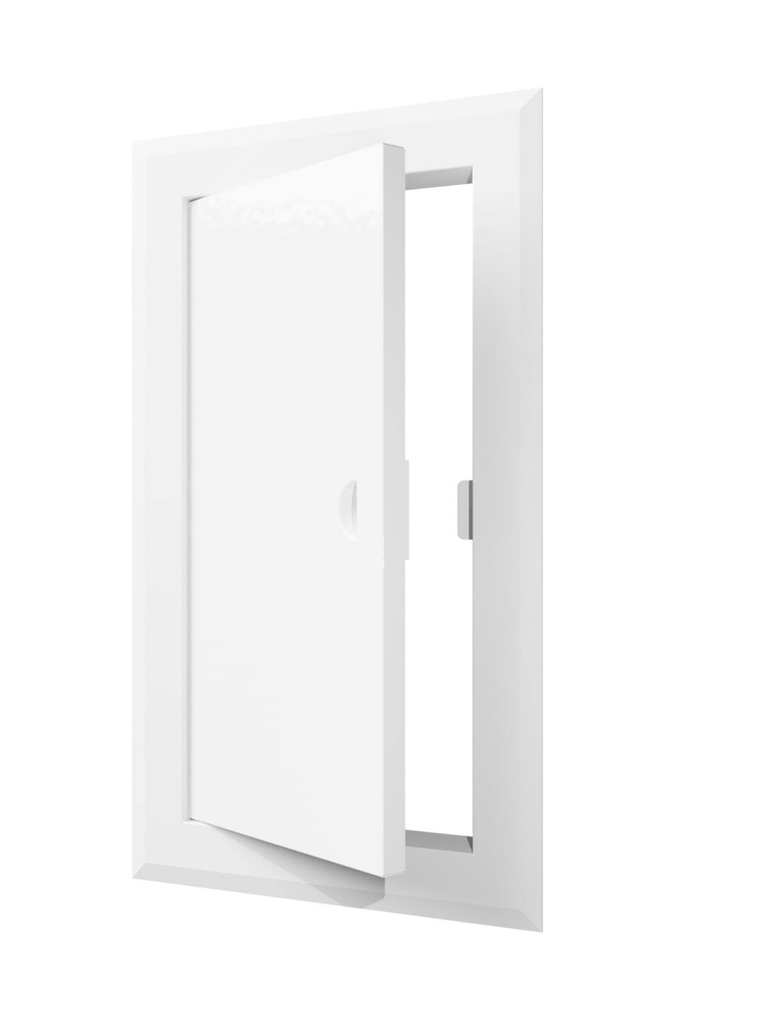 Устанавливается в стену. Оснащен ручкой для удобства открывания/закрывания люка, магнитными замками для фиксации дверцы в закрытом положении и предотвращения случайного открывания. По контуру дверцы имеется рамка, которая скрывает любые неровности проема.