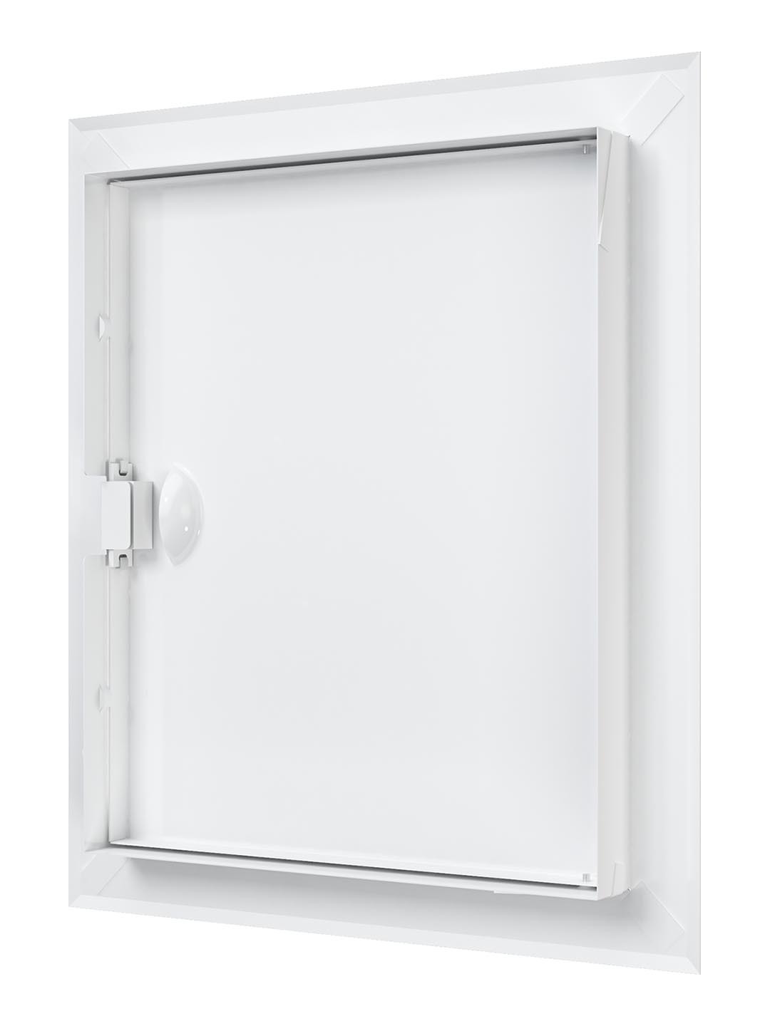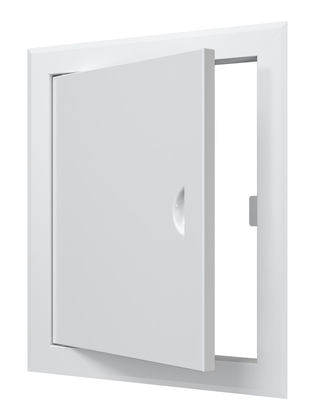 Устанавливается в стену. Оснащен ручкой для удобства открывания/закрывания люка, магнитными замками для фиксации дверцы в закрытом положении и предотвращения случайного открывания. По контуру дверцы имеется рамка, которая скрывает любые неровности проема.