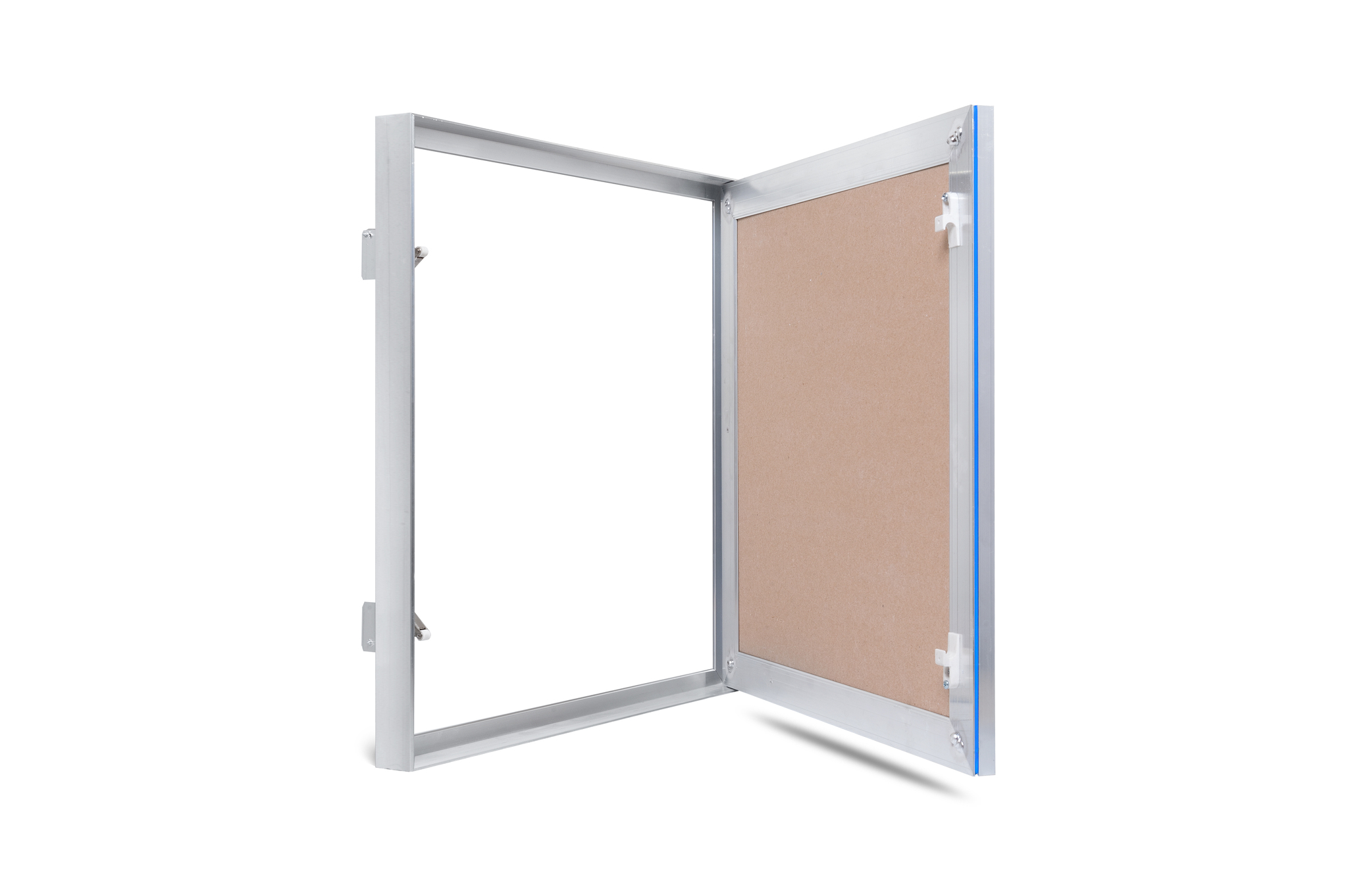 По периметру рамы расположена фаска, что позволяет при установке и покраски дверцы быть люку почти что невидимым, после окончательной отделки месторасположение люка выдает только тонкая аккуратная щель по периметру дверцы.