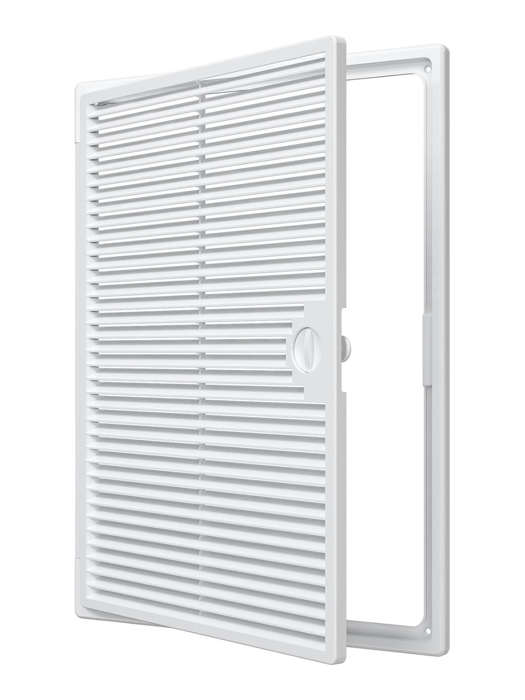 Пластиковые накладные вентилируемые люки-декофоты ДФ устанавливаются на поверхность стены. Оснащены ручкой-задвижкой для удобного открытия дверцы. ДФ является декофотом, т. е. совмещает в себе функции люка и решетки. Благодаря этому объединению не нарушается естественная вентиляция пространства. Декофот монтируется поверх стены или другой поверхности. Благодаря этому ДФ можно устанавливать на ревизионные отверстия с неровными краями – главное, чтобы размеры отверстия были меньше монтажных размеров люка. Если люк требуется установить выше уровня глаз, рекомендуется установка жалюзи вверх, так чтобы они скрывали отверстие. Если же люк требуется установить ниже уровня глаз, то жалюзи должны быть направлены вниз.