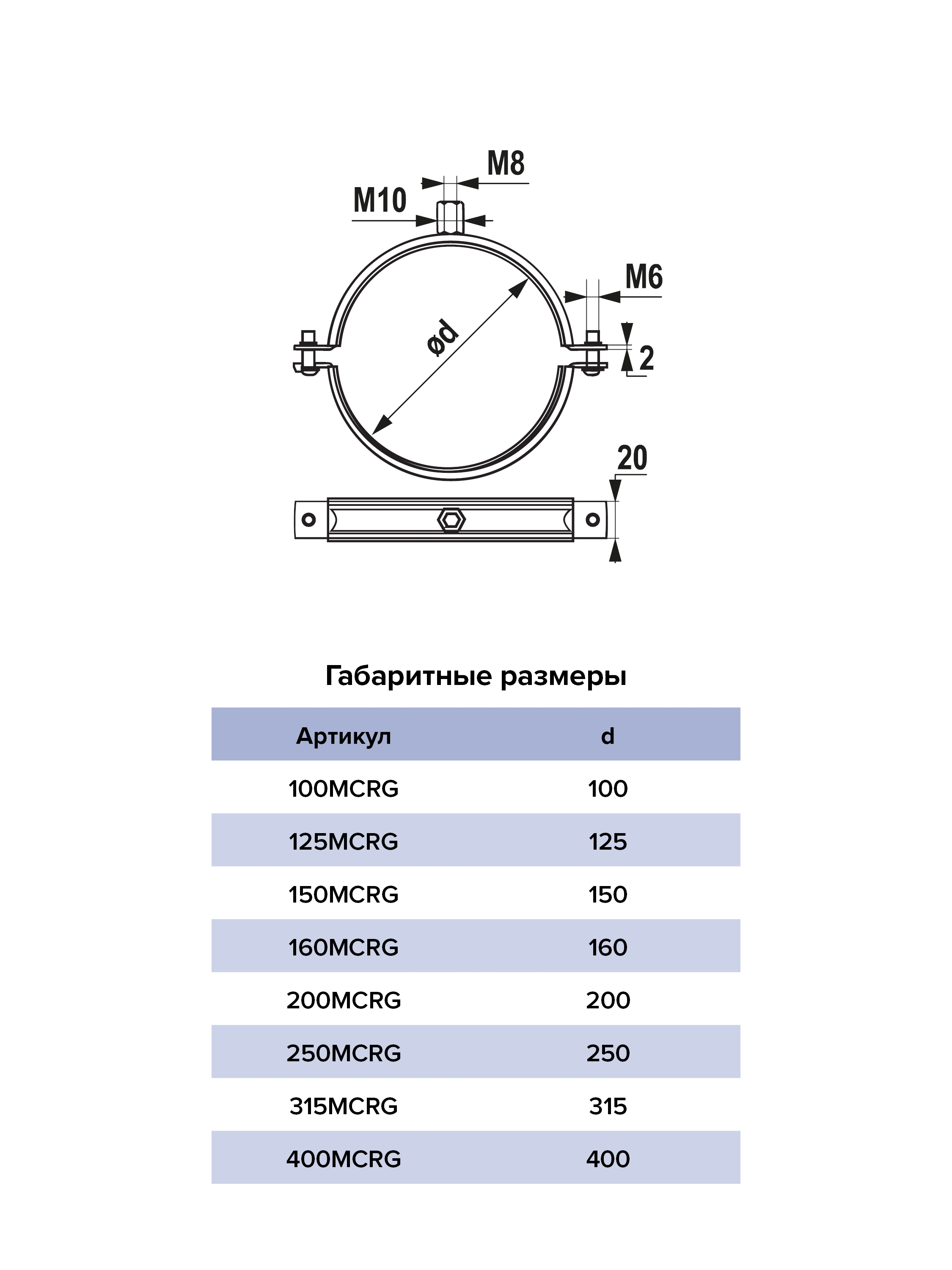Монтажные хомуты с резиновыми уплотнителями MCRG имеют резиновый уплотнитель и универсальную гайку с внутренней резьбой (сначала идет резьба М10, далее М8). Для крепления воздуховодов соответствующего диаметра к потолку или стене. Возможно изготовление специальных изделий.