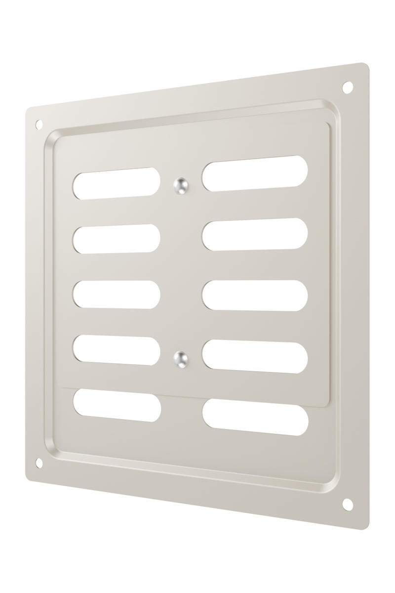Регулируемая металлическая решетка предназначена для установки в вентиляционный проем, где требуется изменение объема поставляемого воздуха. Решетка изготовлена из стали с полимерным покрытием, устойчива к механическим воздействиям и может размещаться как внутри, так и снаружи помещений. С помощью регулятора на лицевой части решетки возможно изменить объем воздушного потока или полностью перекрыть вентиляционный канал. Регулируемая решетка используется, в том числе, для декоративного оформления вентиляционного отверстия, является элементом интерьера и дополняет общий стиль помещения. Небольшая толщина стали — 0,5 мм — позволяет монтировать решетку практически вровень со стеной, а разнообразие цветов — подобрать оптимальный вариант для любого интерьера. Материал: сталь с полимерным покрытием