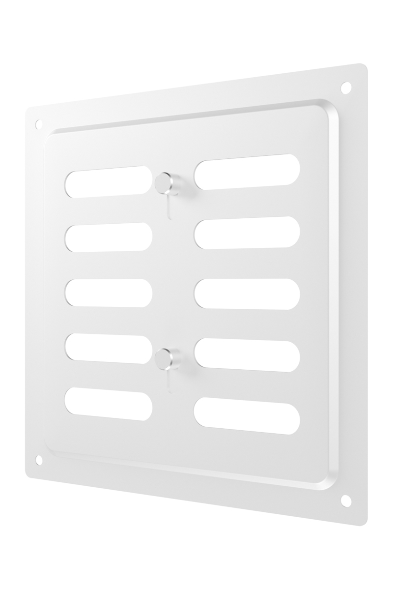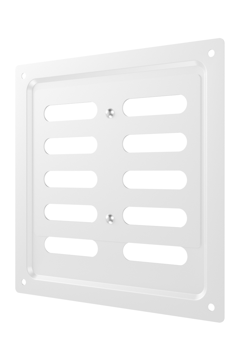 Регулируемая металлическая решетка предназначена для установки в вентиляционный проем, где требуется изменение объема поставляемого воздуха. Решетка изготовлена из стали с полимерным покрытием, устойчива к механическим воздействиям и может размещаться как внутри, так и снаружи помещений. С помощью регулятора на лицевой части решетки возможно изменить объем воздушного потока или полностью перекрыть вентиляционный канал. Регулируемая решетка используется, в том числе, для декоративного оформления вентиляционного отверстия, является элементом интерьера и дополняет общий стиль помещения. Небольшая толщина стали — 0,5 мм — позволяет монтировать решетку практически вровень со стеной, а разнообразие цветов — подобрать оптимальный вариант для любого интерьера. Материал: сталь с полимерным покрытием