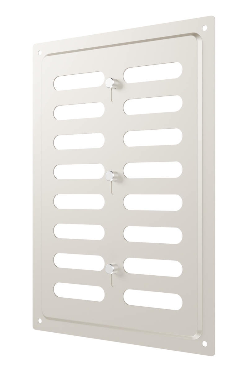 Регулируемая металлическая решетка предназначена для установки в вентиляционный проем, где требуется изменение объема поставляемого воздуха. Решетка изготовлена из стали с полимерным покрытием, устойчива к механическим воздействиям и может размещаться как внутри, так и снаружи помещений. С помощью регулятора на лицевой части решетки возможно изменить объем воздушного потока или полностью перекрыть вентиляционный канал. Регулируемая решетка используется, в том числе, для декоративного оформления вентиляционного отверстия, является элементом интерьера и дополняет общий стиль помещения. Небольшая толщина стали — 0,5 мм — позволяет монтировать решетку практически вровень со стеной, а разнообразие цветов — подобрать оптимальный вариант для любого интерьера. Материал: сталь с полимерным покрытием